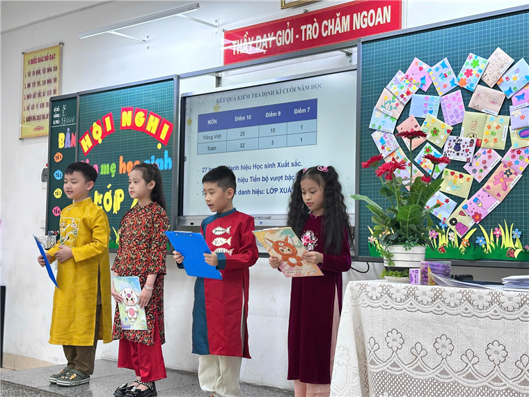 Được nhìn các con có thể thay cô giáo chủ nhiệm trình bày kết quả học tâp và rèn luyện trong năm học qua khiến các bậc phụ huynh không khỏi xúc động và tự hào. Đây là minh chứng rõ nét cho sự trưởng thành, tự tin và khả năng tự đánh giá bản thân của các con.