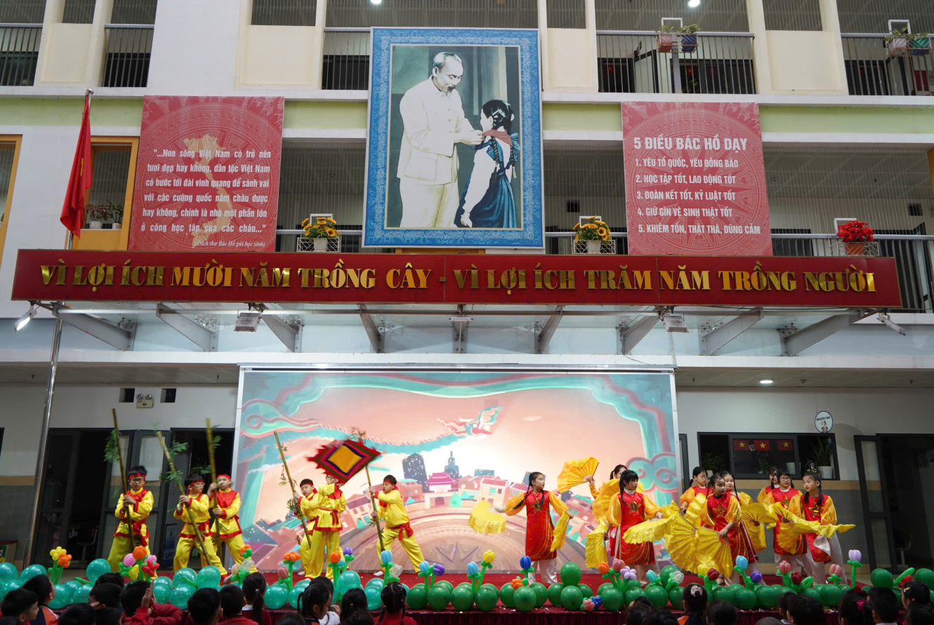 Cũng không kém phần nổi bật, trong chương trình còn có tiết mục múa “Thịnh vượng Việt Nam sáng ngời” do các anh chị học sinh lớp 4A biểu diễn – một minh chứng sinh động cho tinh thầnvươn mình của dân tộc được tiếp nối và thắp sáng từ thế hệ măng non hôm nay.