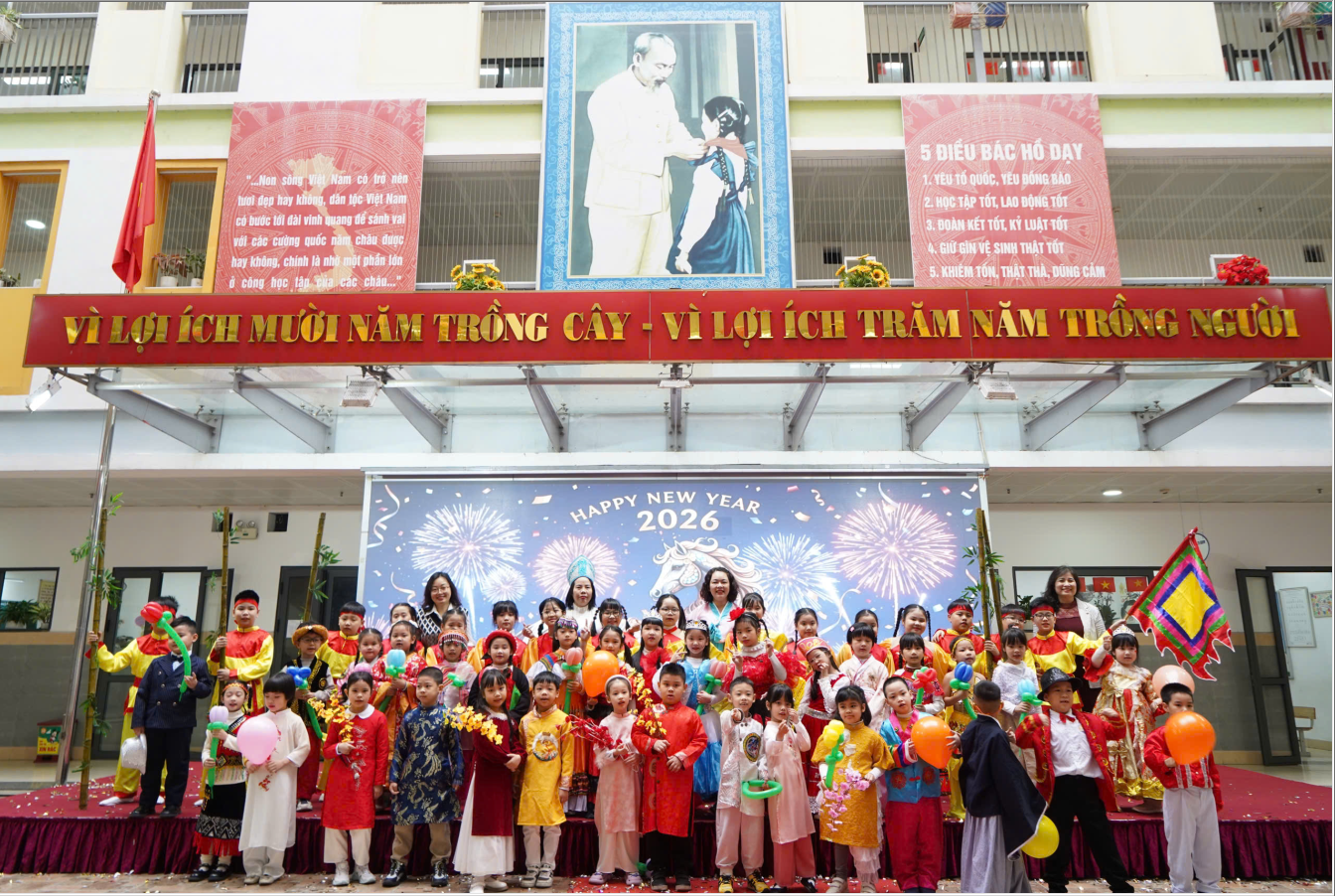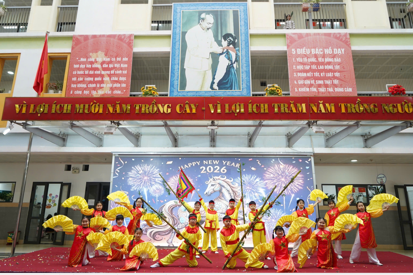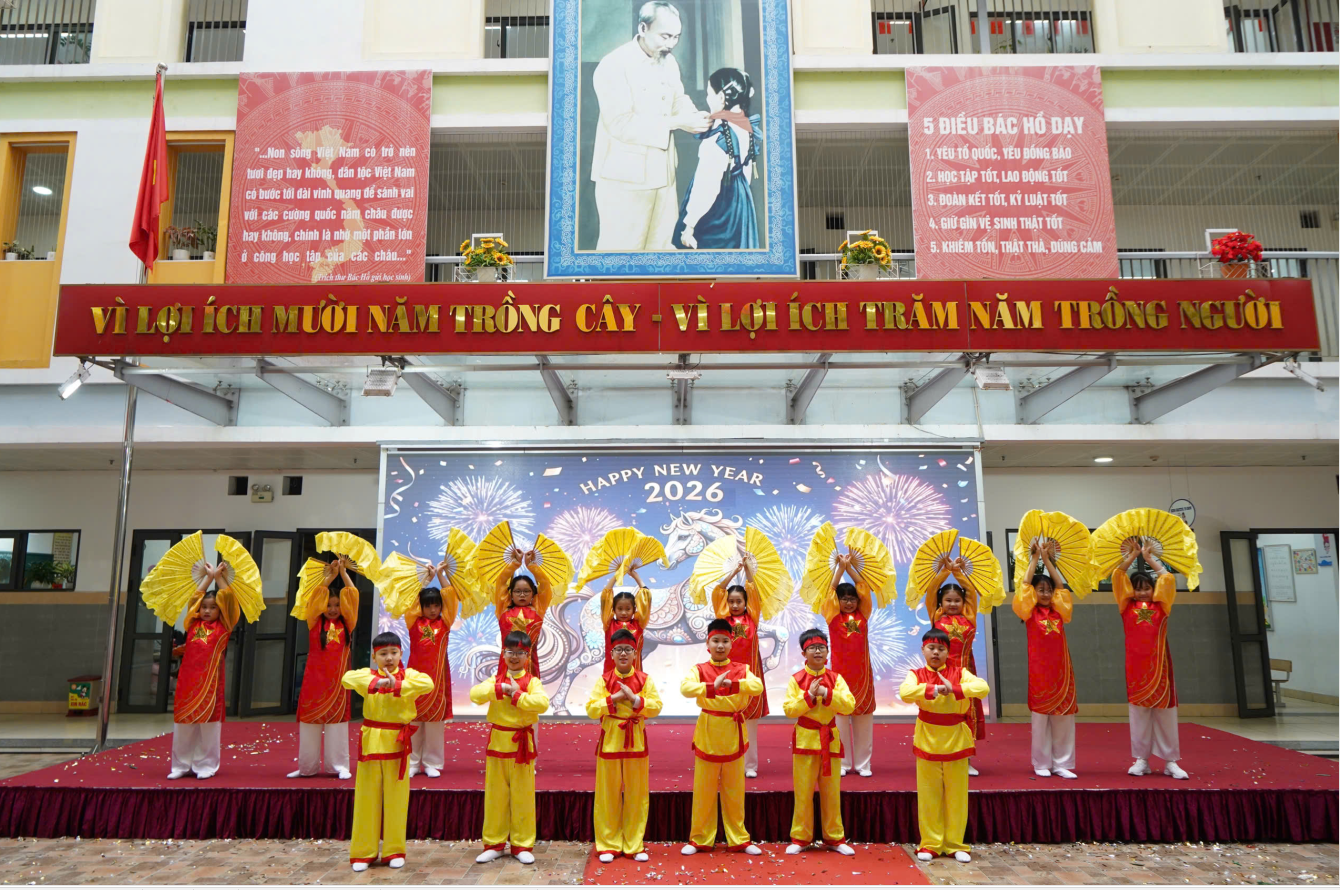 Buổi biểu diễn văn nghệ chào đón năm mới 2026 của các em học sinh lớp hai lớp 1C và 4A đã khép lại trong không khí hân hoan, ấm áp và tràn đầy niềm vui. Chương trình là món quà tinh thần ý nghĩa gửi tới thầy cô, phụ huynh trong những ngày đầu năm mới. Buổi biểu diễn đã để lại nhiều ấn tượng đẹp, góp phần lan tỏa niềm tin, niềm hy vọng và những ước mơ trong sáng cho một năm 2026 mới an lành, hạnh phúc và thành công.