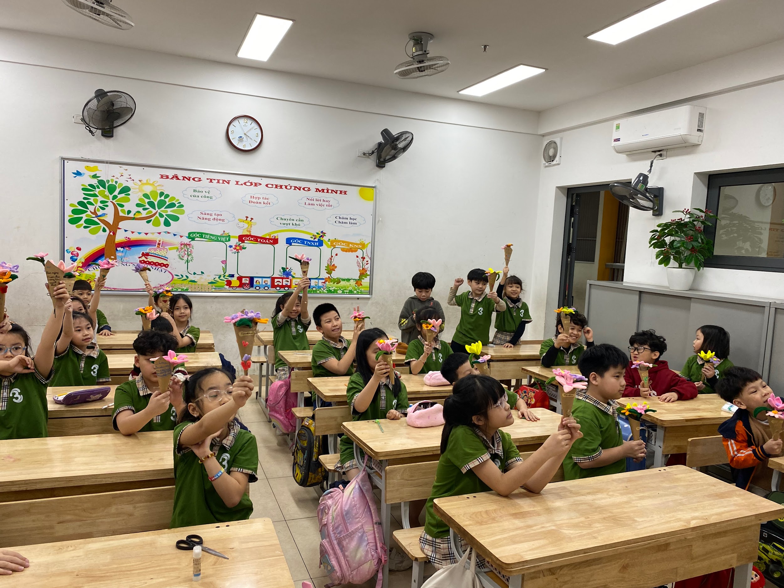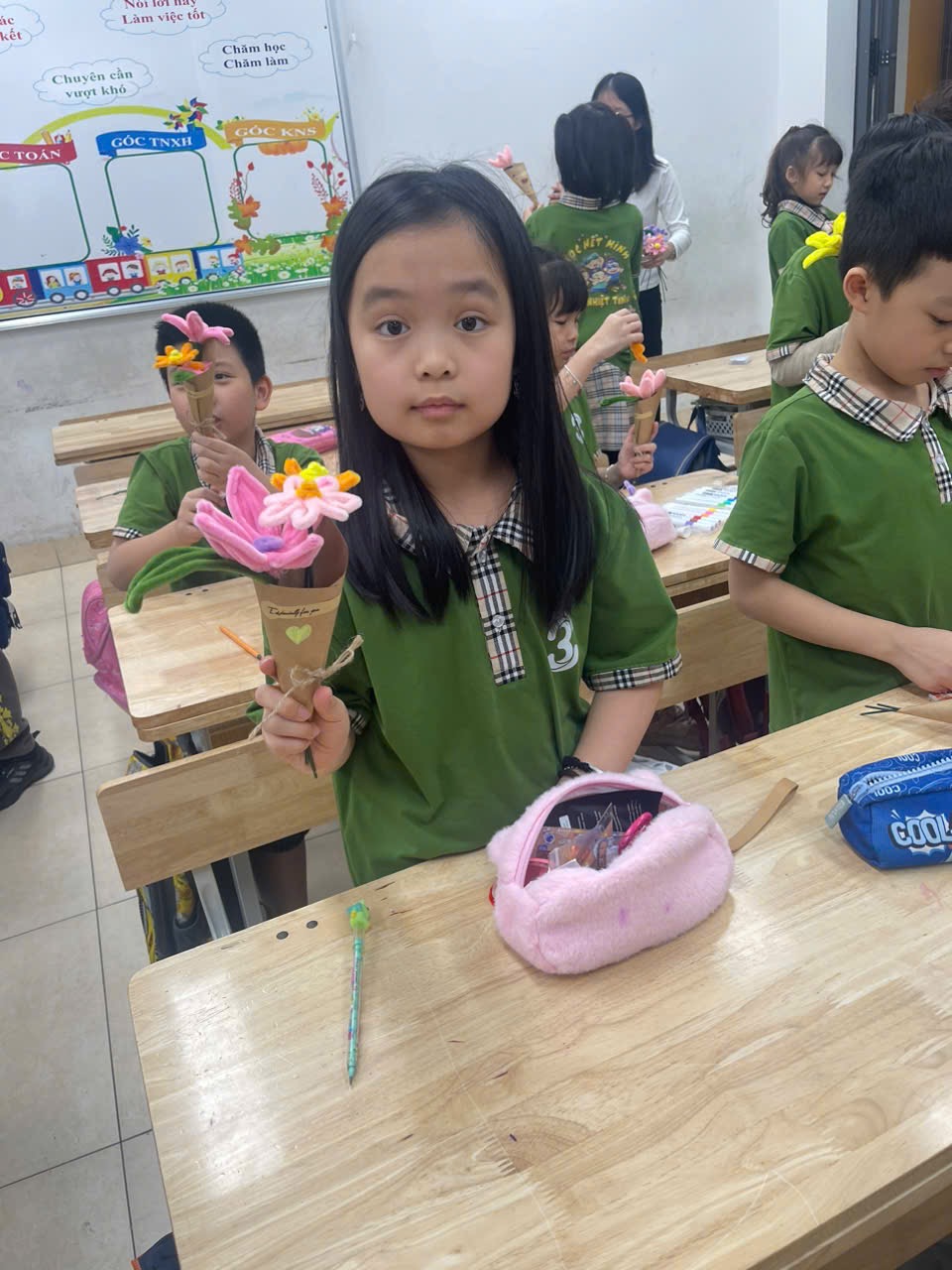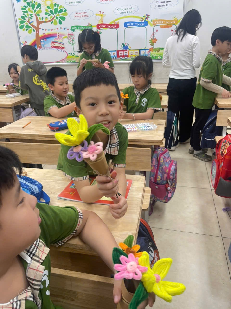 Bên cạnh đó, các em còn tham gia hoạt động cắm hoa và viết những lời chúc dành tặng những người phụ nữ thân yêu. Mỗi bông hoa, mỗi dòng chữ tuy giản dị nhưng chứa đựng biết bao tình cảm và sự trân trọng mà các em muốn gửi gắm. Đây không chỉ là một buổi sinh hoạt mà còn là dịp để các em bày tỏ lòng biết ơn đối với mẹ, cô giáo và những người phụ nữ yêu quý của mình. Những nụ cười rạng rỡ, những lời chúc chân thành chính là minh chứng cho một ngày 8/3 tràn đầy yêu thương.