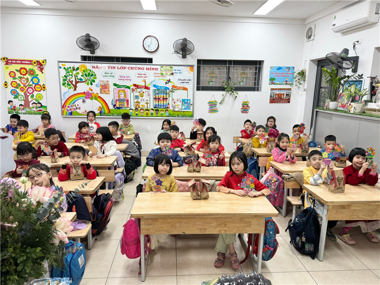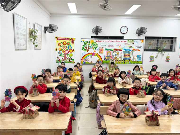 Hòa chung với không khí vui tươi, phấn khởi, cô và trò lớp 2A cùng nhau hội tụ để chào mừng Ngày Quốc tế Phụ nữ 8/3 – một ngày đặc biệt nhằm tôn vinh những người phụ nữ tuyệt vời. Đây cũng là dịp để chúng ta bày tỏ lòng biết ơn sâu sắc đối với những người bà, người mẹ hay những cô giáo đã và đang dạy dỗ chúng em. Thông qua tiết hoạt động trải nghiệm, các em không những hiểu được được ý nghĩa ngày mùng 8/3 mà những lời cảm ơn, những lời yêu thương đã được các bạn học sinh lớp 2A gửi gắm qua những lẵng hoa đủ màu sắc do tự tay các em trang trí để gửi đến những người em yêu quý nhất. Những lẵng hoa tuy giản dị nhưng chất chứa bao niềm yêu thương, lòng kính trọng và biết ơn sâu sắc đến với người phụ nữ yêu quý của các em.
