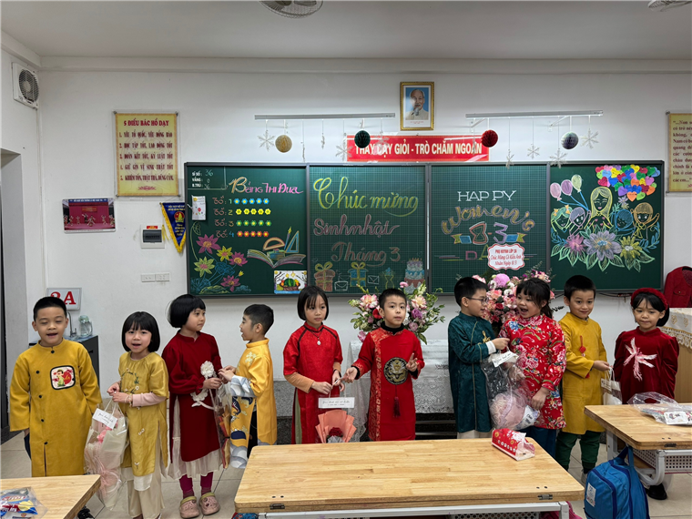 Sau đây là một số hình ảnh của cô và trò lớp 2A trong giờ Hoạt động trải nghiệm với chủ đề “Chào mừng ngày Quốc tế Phụ nữ 8 - 3”