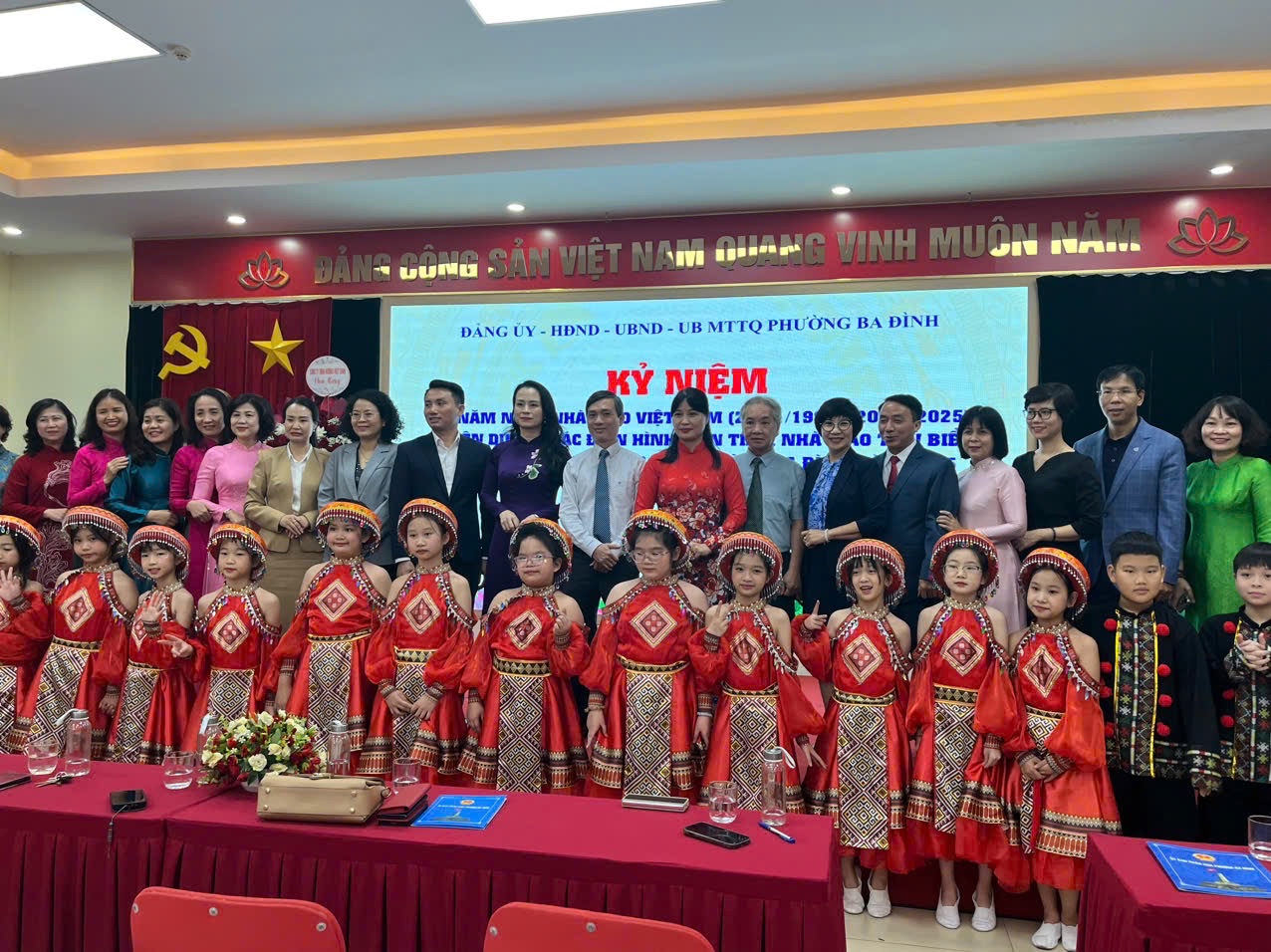 Những ngày tháng 11 đầy ý nghĩa lại về, mang theo không khí tri ân ấm áp và tinh thần đoàn kết lan tỏa khắp mọi nơi. Với tập thể lớp 5A trường Tiểu học Phan Chu Trinh, tháng 11 năm nay trở nên đặc biệt hơn khi các em được vinh dự tham gia biểu diễn văn nghệ trong hai sự kiện lớn do phường Ba Đình tổ chức: chương trình chào mừng 43 năm Ngày Nhà giáo Việt Nam và ngày hội Đại đoàn kết toàn dân tộc.