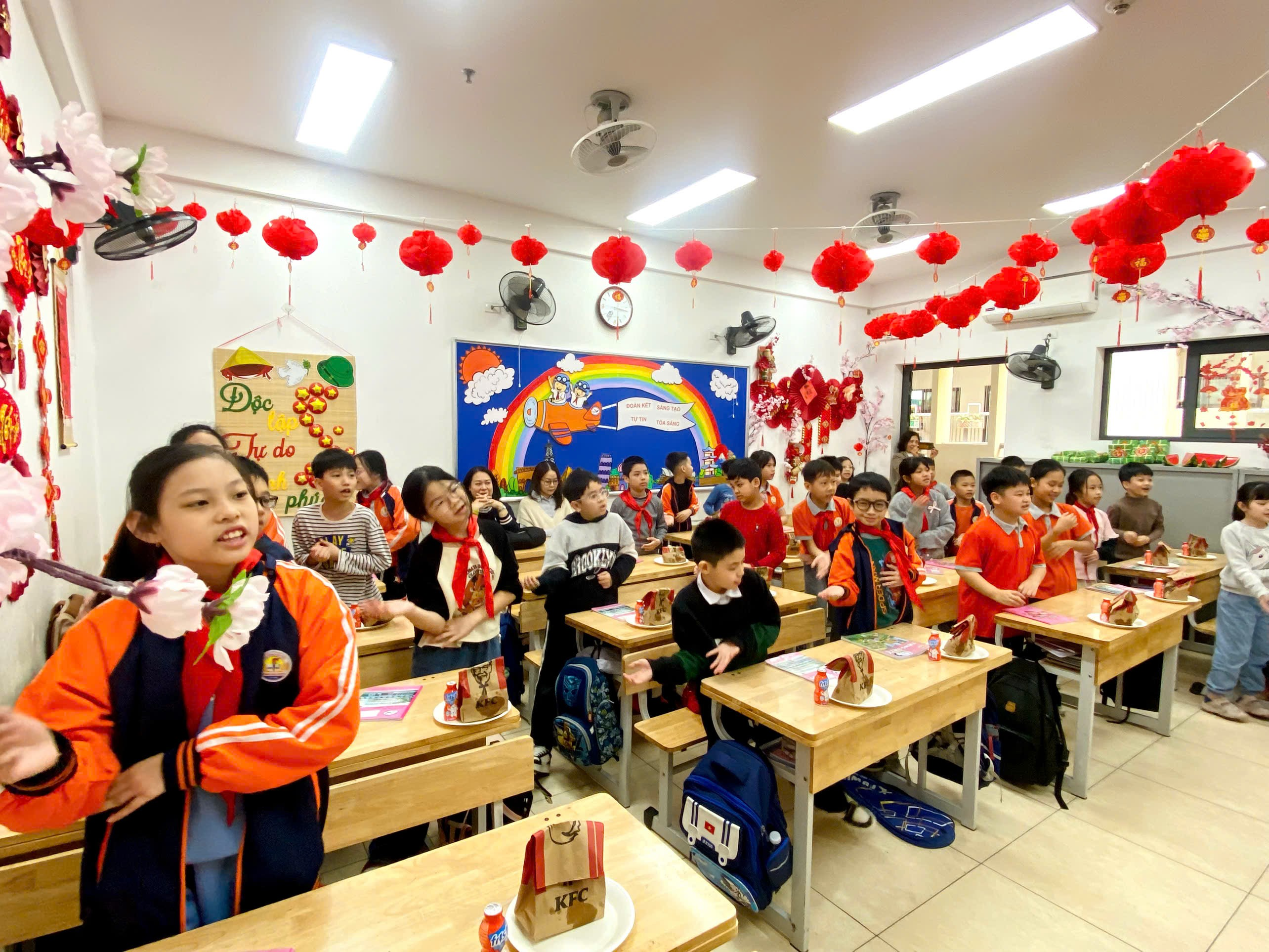 Tham dự buổi lễ sơ kết có sự hiện diện của cô giáo chủ nhiệm, bác Trưởng ban phụ huynh cùng nhiều bác phụ huynh của lớp 4B và toàn thể các em học sinh thân yêu. Mở đầu buổi lễ là các tiết mục văn nghệ được diễn ra hết sức sôi động và rộn rã của các bạn học sinh lớp 4B, có thể thấy khí thế đón xuân tràn ngập trong buổi lễ sơ kết.