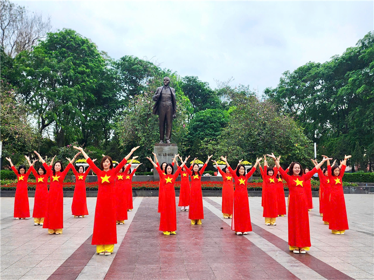 Để hoà cùng không khí tự hào dân tộc của cả đất nước cô và các em học sinh khối 5 cùng nhau tham gia bài Đồng diễn “Vang mãi bài ca chiến thắng -Đất nước trọn niềm vui”.