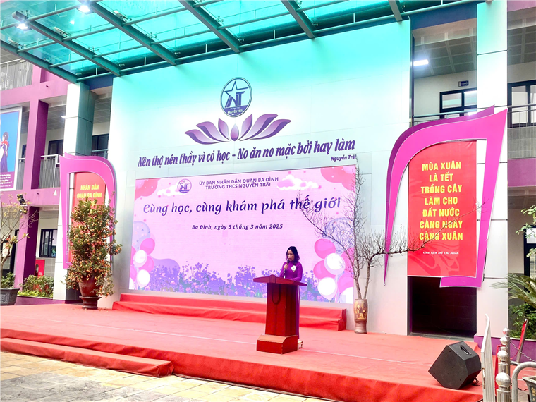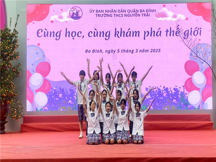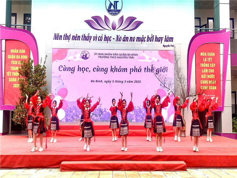Mở đầu chương trình, cô Lê Thị Minh Huệ - Bí thư chi bộ - Hiệu trưởng Trường THCS Nguyễn Trãi đã chào đón các bạn học sinh khối lớp 5 bằng những lời nói thật ngắn gọn, chân tình và cởi mở. Không khí được khuấy động bằng 3 tiết mục biểu diễn sôi động với vũ đạo nhanh, khỏe khoắn và không kém phần duyên dáng của các anh chị lớp 6, 7 và cả của các bạn trường Vạn Phúc đáng yêu nữa. Bộ trang phục dân tộc sắc màu rực rỡ đã thu hút mọi ánh nhìn, tiết tấu nhạc rộn rã khiến tất cả những người có mặt như cũng muốn nhún nhảy theo. Bằng một giọng thanh trong và lôi cuốn, cô dẫn chương trình đã giới thiệu khái quát về trường THCS Nguyễn Trãi khéo léo bằng trò chơi “Thử tài bạn” với 6 câu hỏi trắc nghiệm. Phần thi này đã cho các bạn học sinh lớp 5 thấy được sự khác biệt của môi trường học tập mới với trường tiểu học, thấy được nhiều điều thú vị khi các bạn ấy được học ở một ngôi trường có thiết kế hiện đại, với đầy đủ các phòng học chức năng cho các hoạt động đó.