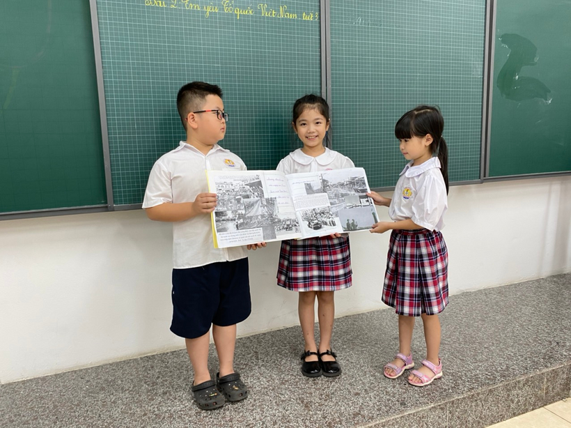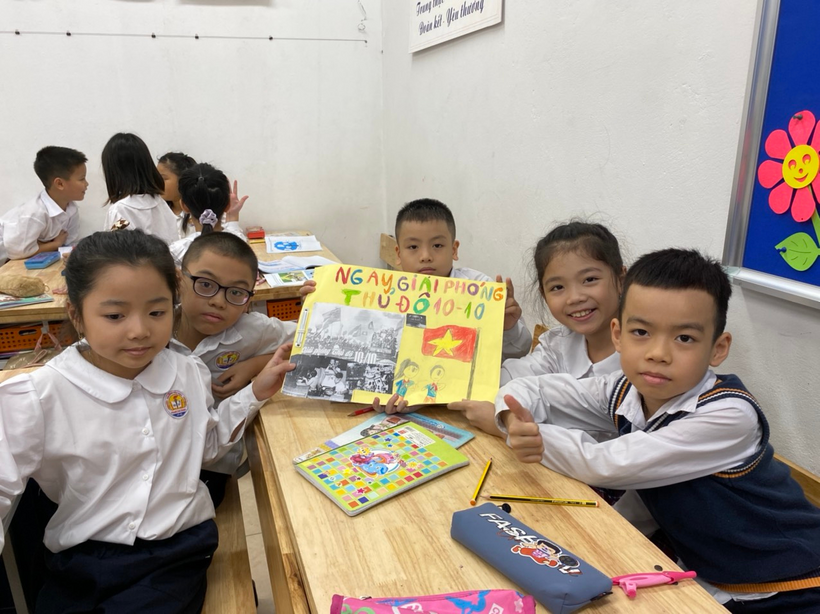 Tại các lớp học, các cô đã phát động các con được tổ chức tìm hiểu tư liệu, vẽ tranh cổ động và thuyết minh, trưng bày những tài liệu, hình ảnh về ngày Giải phóng Thủ đô rất sôi nổi, hào hứng.