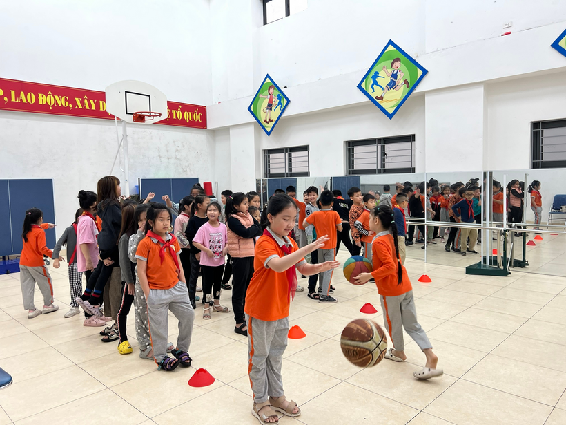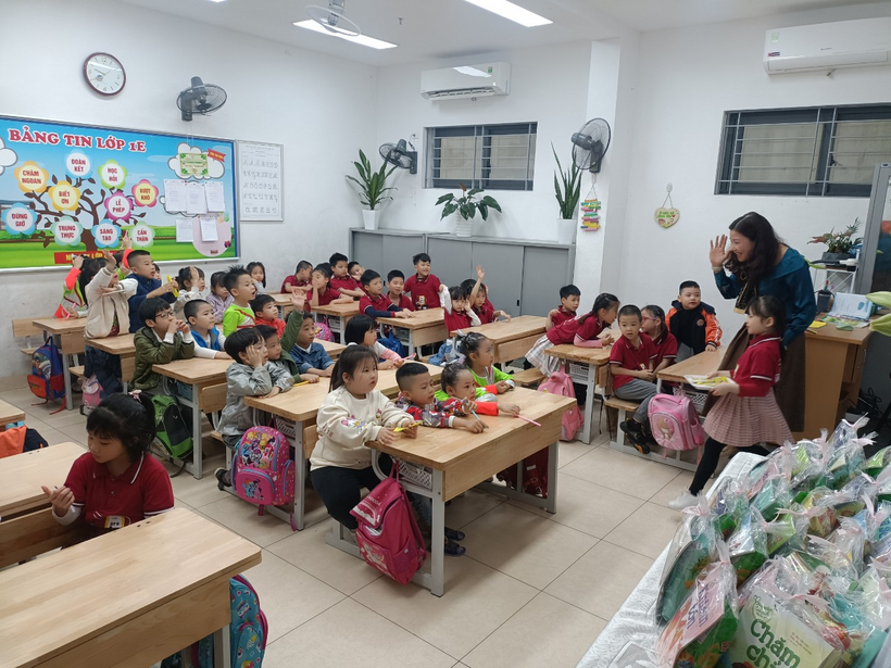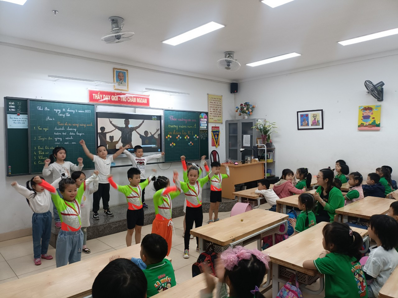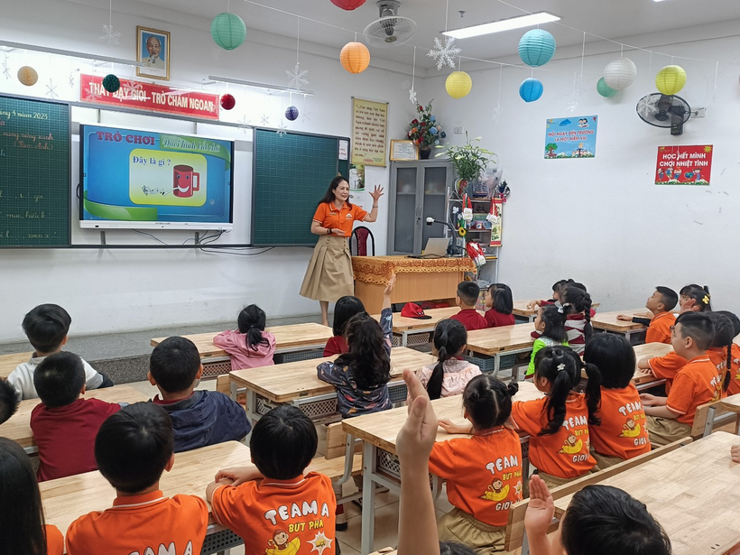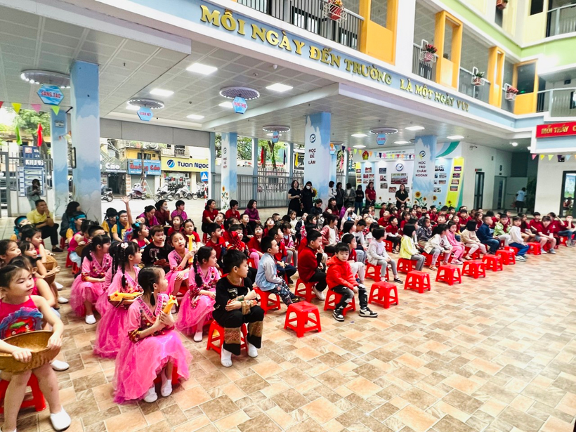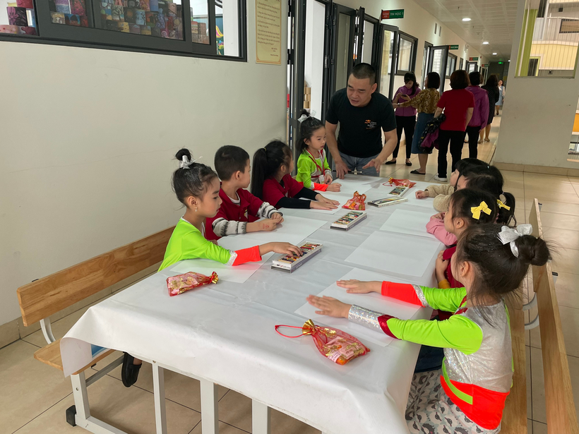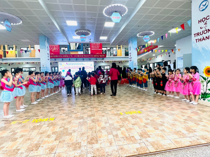 Đặc biệt hơn, các em khối lớp Mẫu giáo lớn đã được cùng tham dự một số hoạt động với anh, chị học sinh khối lớp 1 qua các trò chơi đố vui, đuổi hình bắt chữ, ….