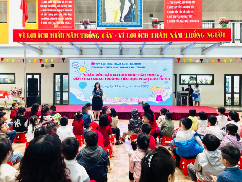 Bước vào cánh cổng ngôi trường TH Phan Chu Trinh, các em học sinh lớp mẫu giáo lớn trường Mầm non A được đón nhận những nụ cười rạng rỡ của thầy, cô và các anh chị học sinh nhà trường. Tham dự chương trình có các thầy, cô giáo của hai nhà trường, gần 100 em học sinh khối lớp mẫu giáo lớn trường Mẫu giáo mầm non A và đại diện học sinh của trường TH Phan Chu Trinh.