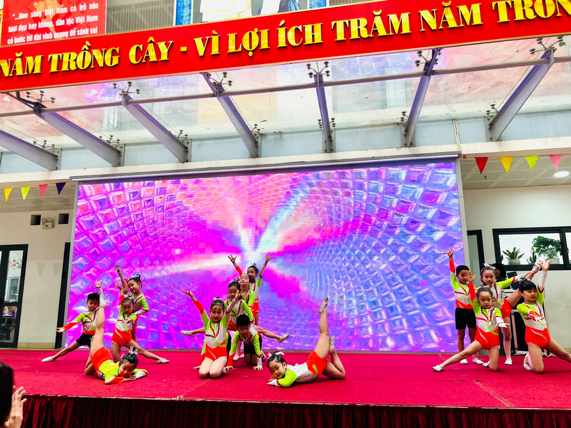 Tiết mục Aerobic do các em học sinh trường Mầm non A biểu diễn