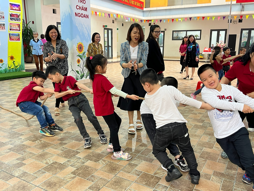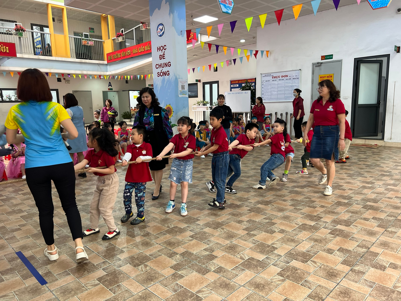 Đến với chương trình giao lưu, các em học sinh hai nhà trường đã mang đến những tiết mục văn nghệ đặc sắc và cùng tham gia hoạt động vui khoẻ với trò chơi Kéo co đầy hứng khởi.