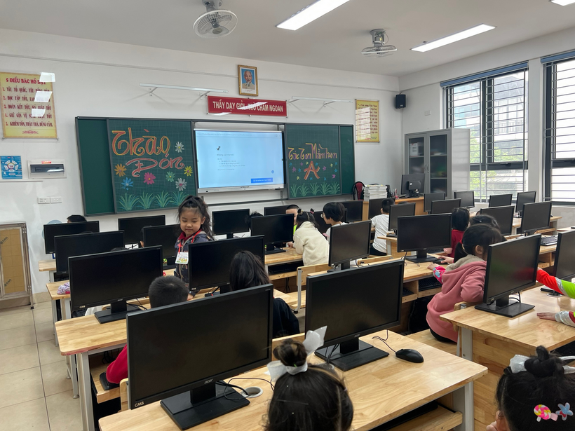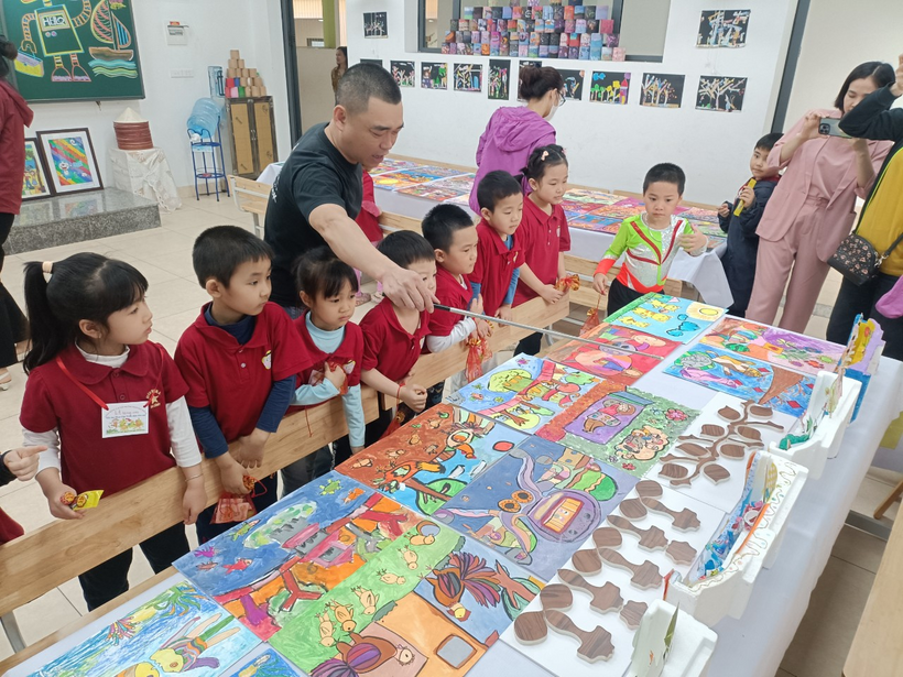 Các em còn được tham quan, trải nghiệm các phòng chức năng của trường TH Phan Chu Trinh, khám phá phòng Âm nhạc, Tin học, Tiếng Anh, trải nghiệm “Thử tài làm hoạ sĩ” ở phòng Mỹ thuật và cùng đến Thư viện - không gian dành cho các bạn nhỏ yêu sách.