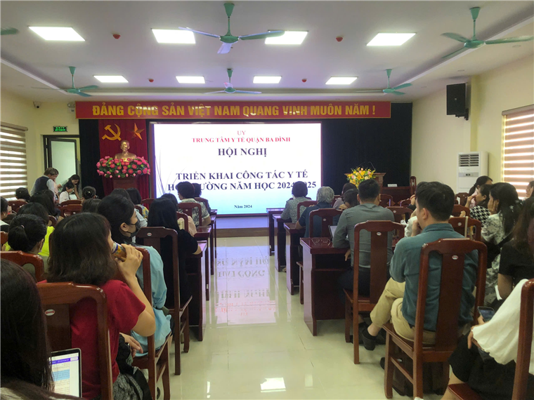Để chuẩn bị cho công tác Y tế học đường năm học 2024-2025, ngày 8/11/2024, Trung tâm Y tế quận Ba Đình phối hợp với phòng GD & ĐT quận đã tổ chức Hội nghị triển khai công tác Y tế học đường với sự tham dự của các đ/c cán bộ phòng GD& ĐT, Phòng Y tế, Trưởng trạm Y tế các phường, Đại diện Ban Giám hiệu và nhân viên Y tế các trường học trên địa bàn quận tại Hội trường tầng 3 số 50 phố Hàng Bún - phường Quán Thánh - quận Ba Đình - Hà Nội.