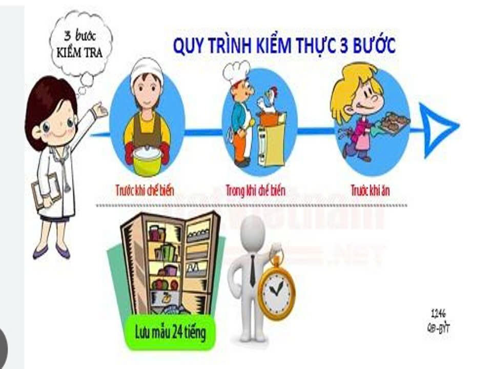 - Hướng dẫn thực hiện chế độ kiểm thực ba bước và lưu mẫu thức ăn đối với cơ sở kinh doanh DVAU (Theo quyết định 1246/QĐ-BYT ngày 31/3/2017 của BYT) và cảnh báo tình hình ngộ độc thực phẩm từ đầu năm 2024 tới nay.