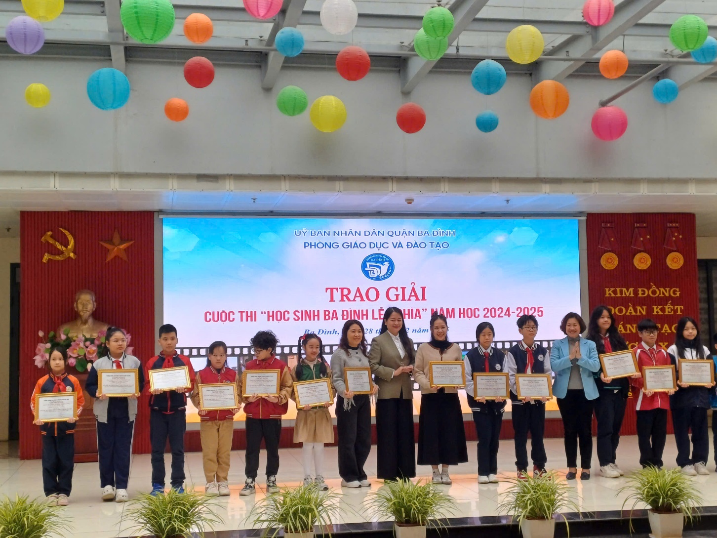 Sáng ngày 28/2, Phòng Giáo dục và Đào tạo quận Ba Đình tổ chức lễ trao giải cuộc thi "Học sinh Ba Đình lễ nghĩa" năm học 2024 - 2025. Vượt qua nhiều tác phẩm, trường Tiểu học Phan Chu Trinh vinh dự nhận 2 giải thưởng, đánh dấu thành công đáng ghi nhận trong hành trình lan tỏa những giá trị văn hóa và đạo đức tốt đẹp.