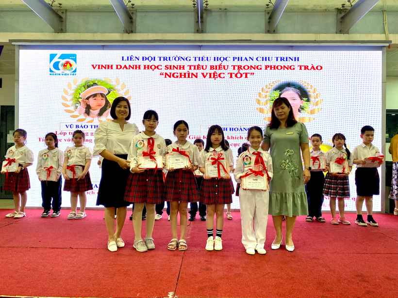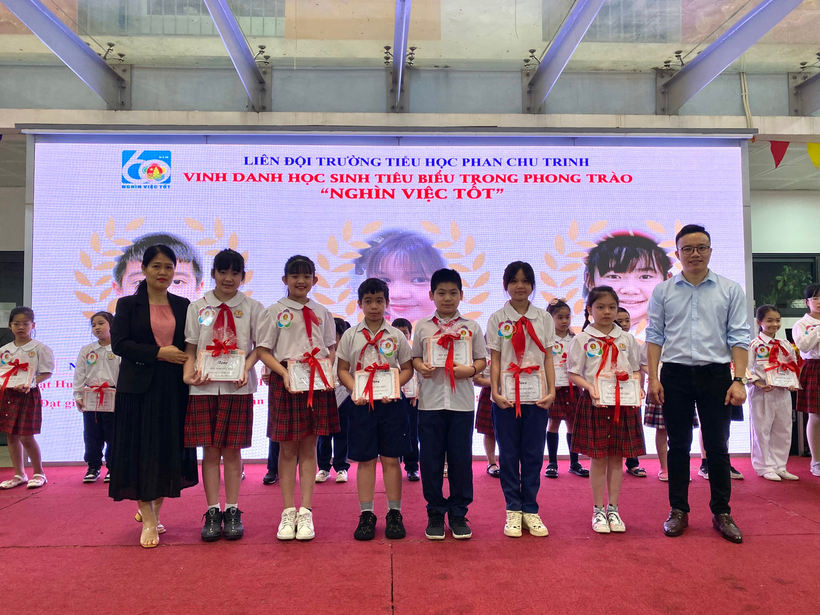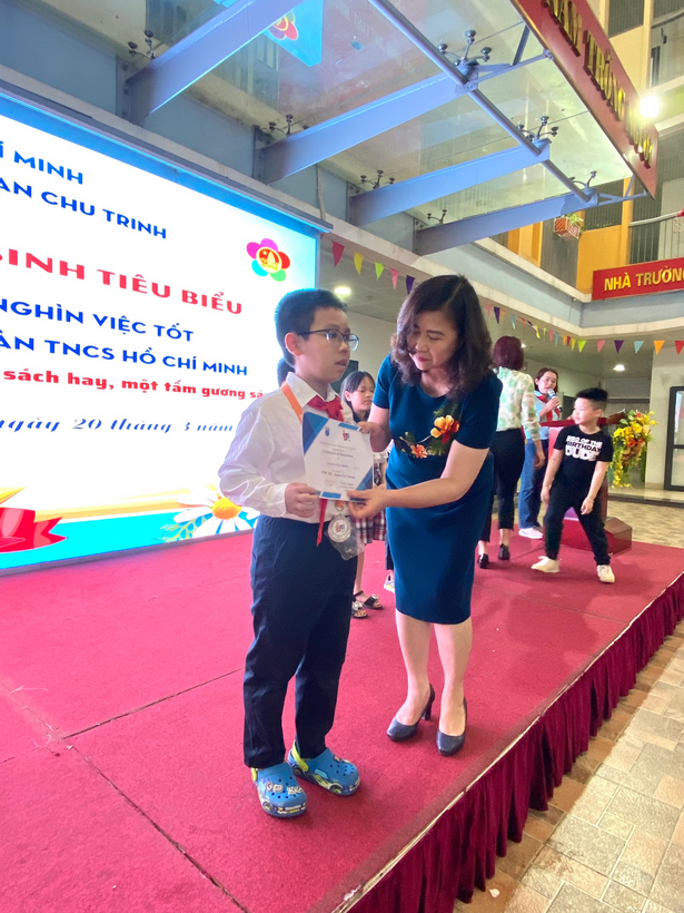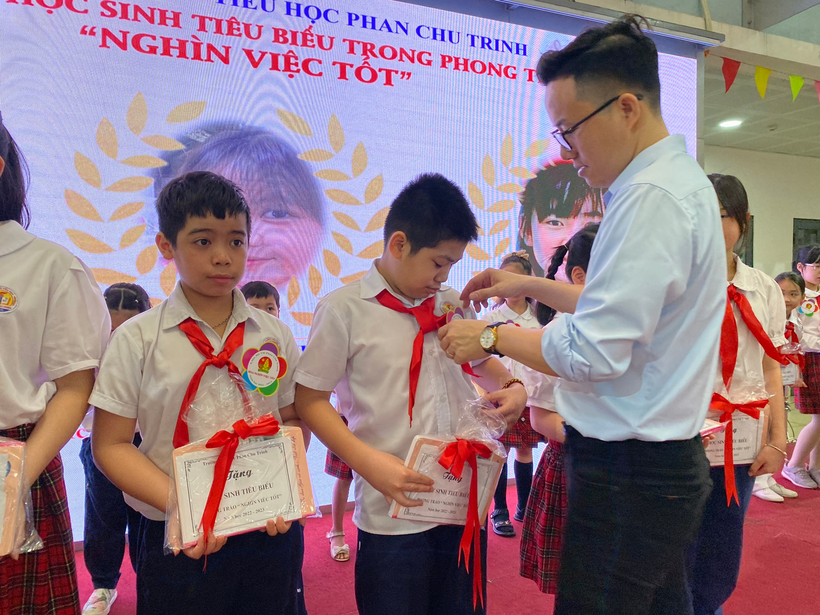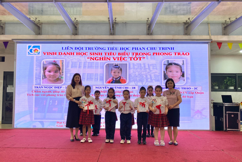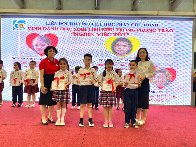 Sau lễ chào cờ đầu tuần với chủ điểm Kỉ niệm chào mừng 92 năm ngày thành lập Đoàn Thanh niên Cộng sản Hồ Chí Minh (26/3/2023 – 26/3/2023), Liên đội nhà trường tổ chức Vinh danh học sinh tiêu biểu trong phong trào Nghìn việc tốt” và trao cờ thi đua của các khối lớp. Các bạn học sinh tiêu biểu đến từ khối lớp Một đến khối lớp Năm đều là những cán bộ Đội, cán bộ lớp giỏi, là học sinh gương mẫu, chăm ngoan, học giỏi, đạt nhiều giải cao trong các cuộc thi.