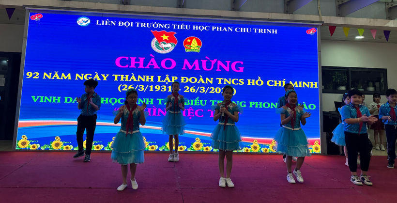 Với ý nghĩa đó, sáng ngày 20/3/2023, trường Tiểu học Phan Chu Trinh tổ chức chào mừng 92 năm ngày thành lập Đoàn Thanh niên Cộng sản Hồ Chí minh (26/3/2023 – 26/3/2023) và Vinh danh học sinh tiêu biểu trong phong trào “Nghìn việc tốt”