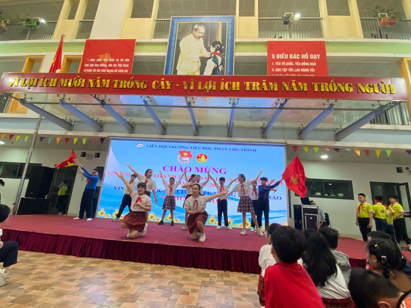Trong buổi lễ, cô Tổng phụ trách Trần Thị Huyền Nhung đã gửi lời nhắn nhủ các bạn học sinh “Mong các em sẽ không ngừng phấn đấu rèn đức, luyện tài theo lời Bác Hồ dạy. Các em là những bông hoa tươi đẹp nhất và sẽ là chủ nhân tương lai của đất nước, góp phần xây dựng đất nước ngày càng giàu đẹp.”