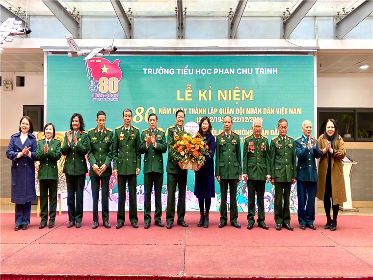 Thay mặt cho toàn thể giáo viên, nhân viên và cả nghìn học sinh, Ban giám hiệu đã gửi tới đoàn đại biểu lẵng hoa tươi thắm cùng lời cảm ơn sâu sắc những đóng góp to lớn, sự hi sinh thầm lặng của các thế hệ cha anh, những người lính Cụ Hồ.