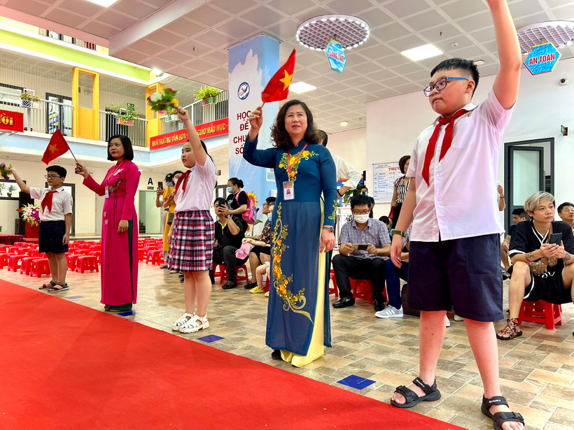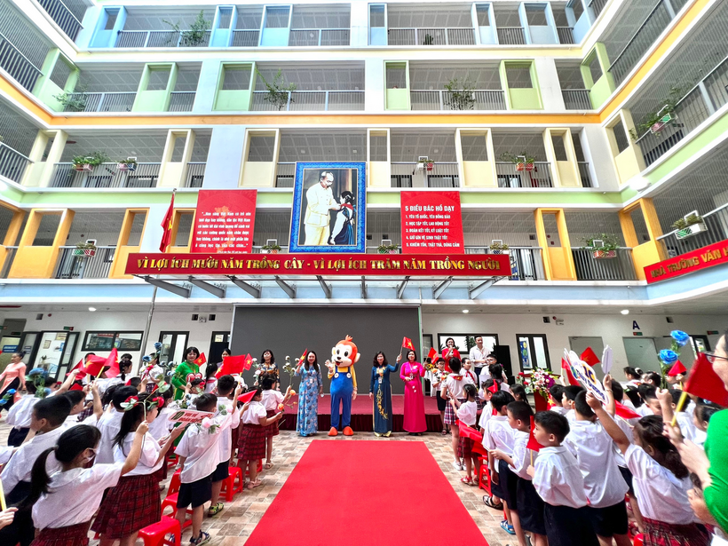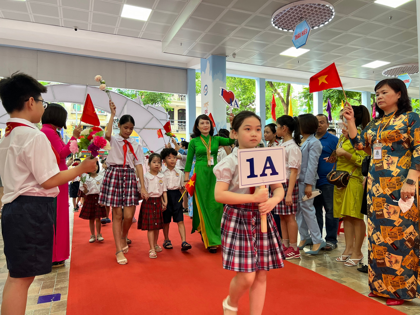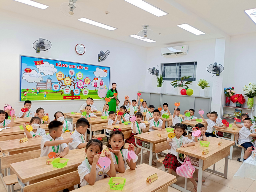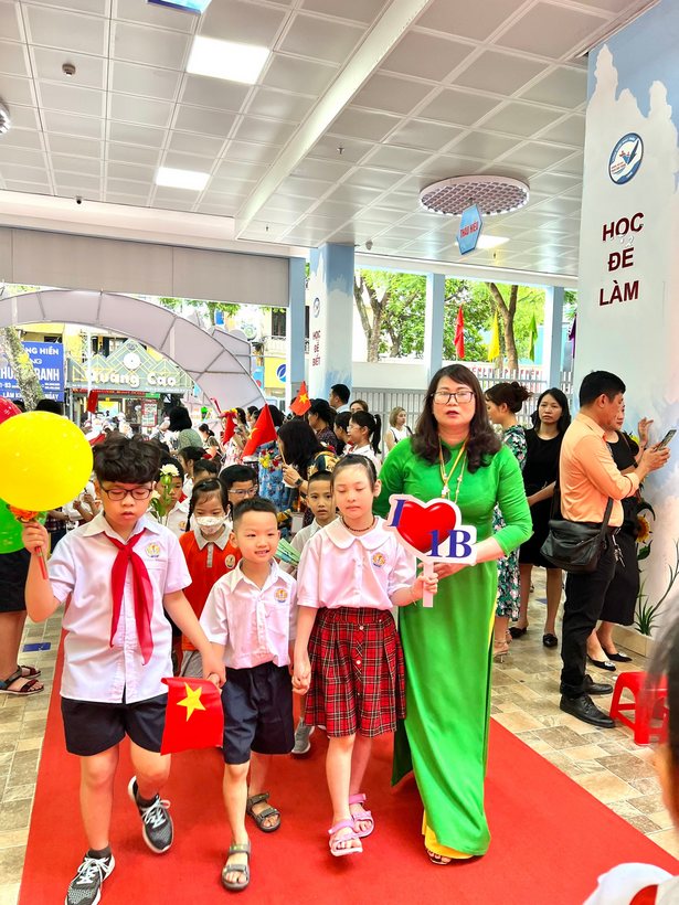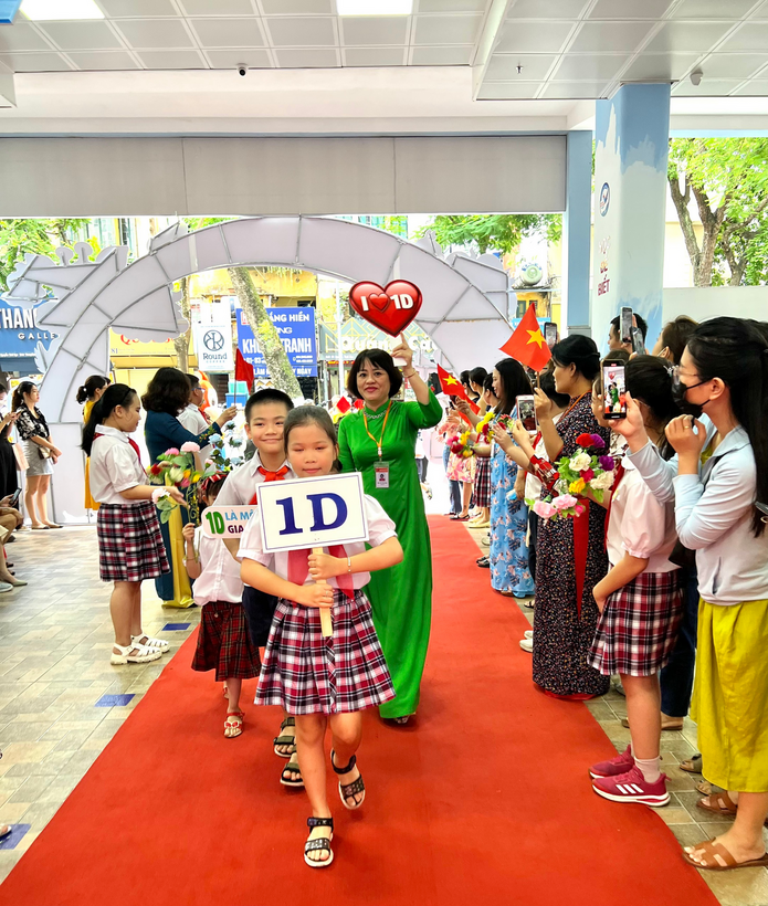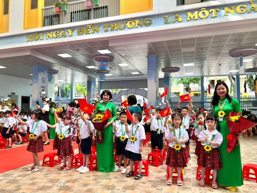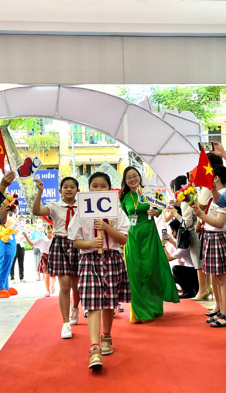 Với tấm lòng yêu nghề, mến trẻ, với mong muốn tạo cho các con bước khởi đầu tự tin, thân thiện. Ngay từ cổng trường, các bé đã được đón chào bằng những nhân vật hoạt hình thân quen gần gũi Khỉ vàng ngộ nghĩnh. Món quà đầu tiên mà nhà trường dành tặng cho các em chính là những dây hoa đeo cổ dễ thương. Sau đó, các em còn được xem những màn biểu diễn đầy hấp dẫn của đội văn nghệ nhà trường, được tham gia những trò chơi thú vị, được nhảy vũ điệu Baby shark Aramsamsam cùng các thầy cô giáo và các bạn. Tất cả những hoạt động ấy đã đem lại cho các con sự vui tươi, hồ hởi trong buổi đầu tiên đi học.