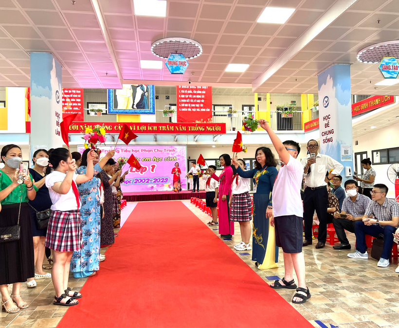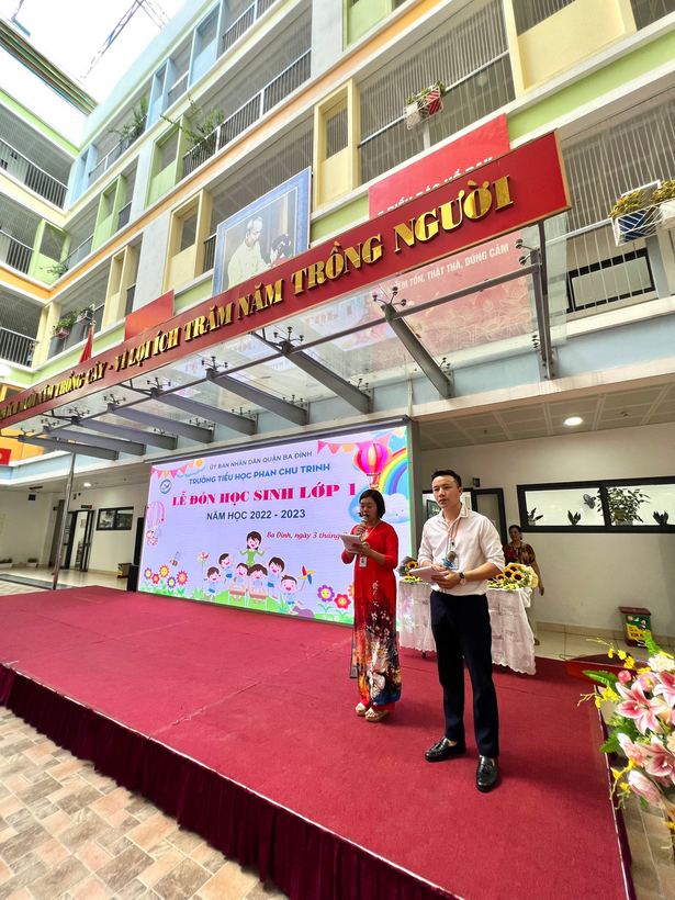 Để đón những thành viên nhỏ tuổi nhất của ngôi nhà Tiểu học Phan Chu Trinh trong năm học 2022 - 2023 này, Ban giám hiệu nhà trường và các thầy cô giáo đã chuẩn bị một chương trình thật đặc biệt. Tưng bừng, rực rỡ, rộn ràng, xen lẫn bất ngờ, ngạc nhiên … là những gì thầy cô, cha mẹ học sinh thấy trong buổi lễ đón học sinh lớp 1 năm nay.