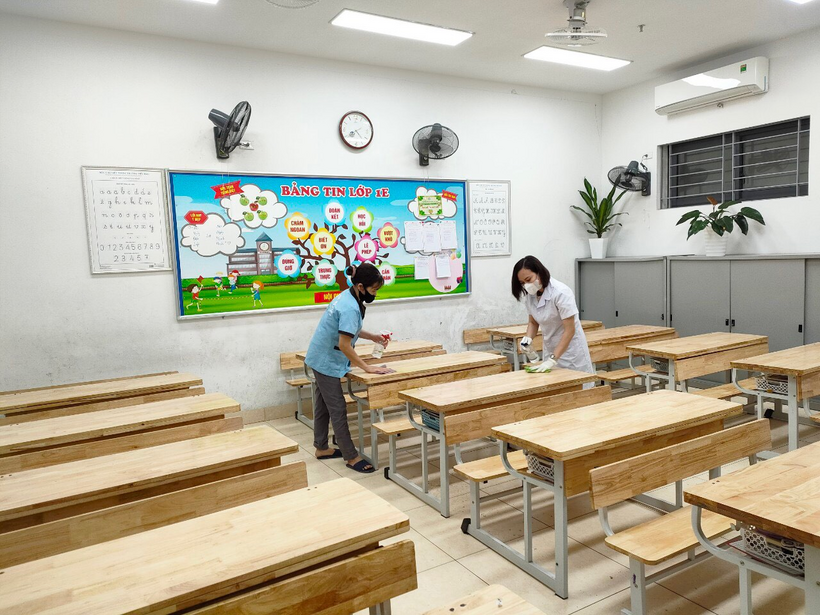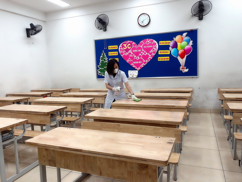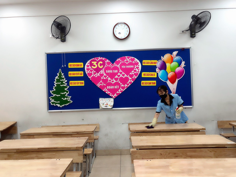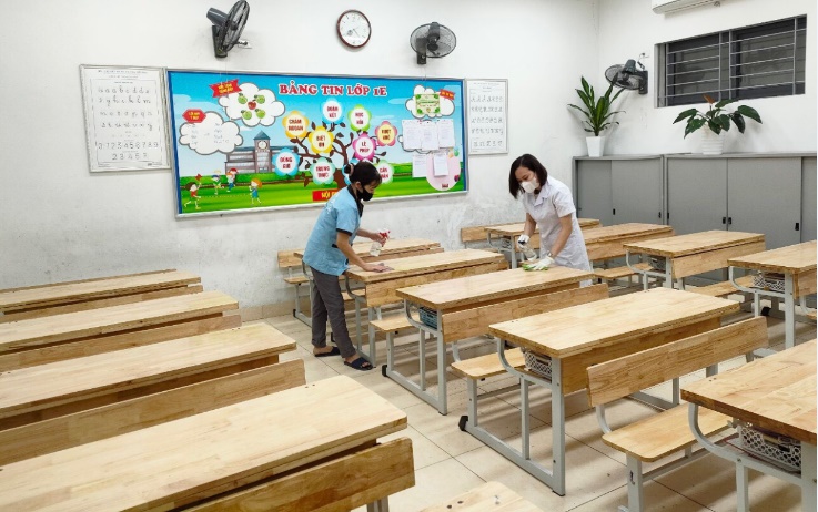 - Sau mỗi buổi học, nhà trường tổ chức khử khuẩn, lau bàn ghế bằng CloraminB;