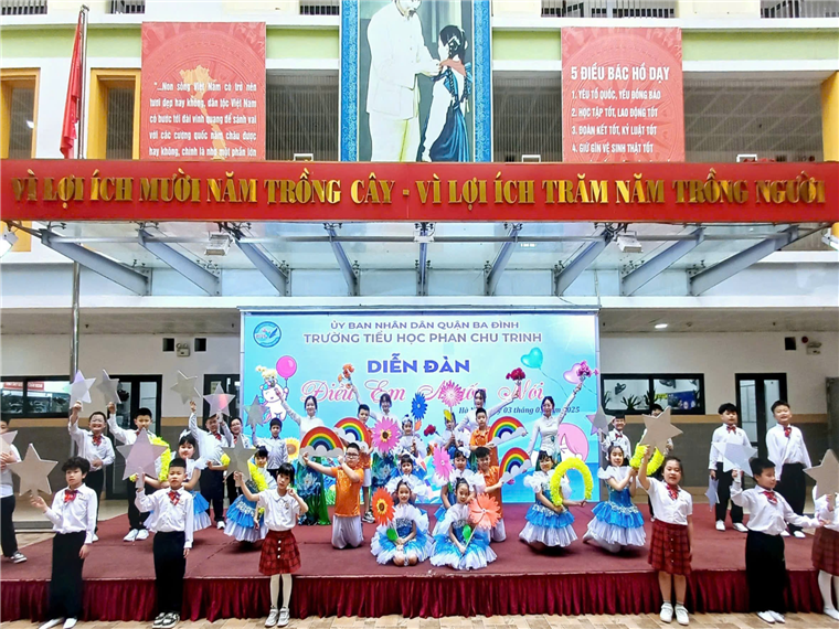 Tại chương trình nhà trường vinh danh các em học sinh đã tham gia cuộc thi “Học sinh Ba Đình lễ nghĩa”, ghi nhận thành công đáng tự hào mà các em đã mang đến thông điệp đầy ý nghĩa trong hành trình lan tỏa những giá trị văn hóa và đạo đức tốt đẹp của các em học sinh TH Phan Chu Trinh và học sinh quận Ba Đình.