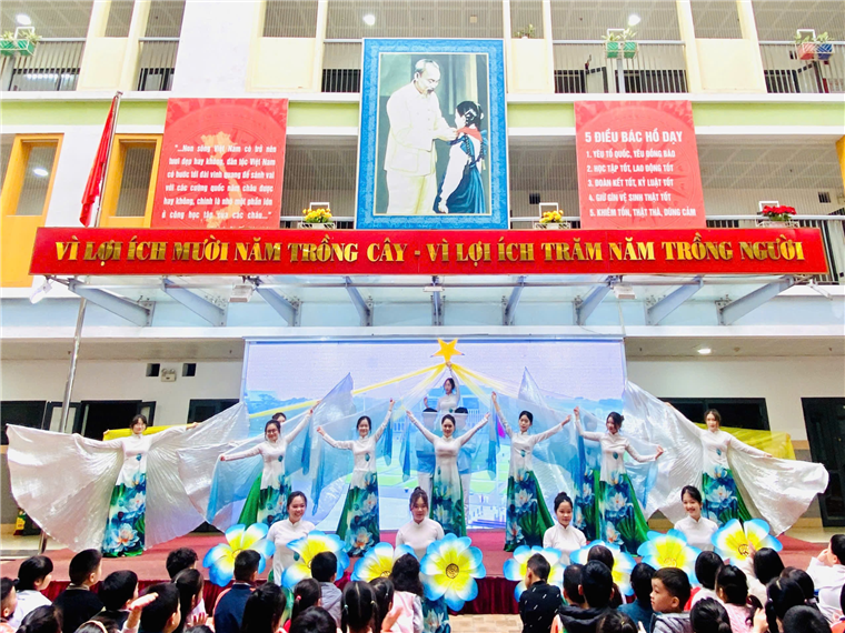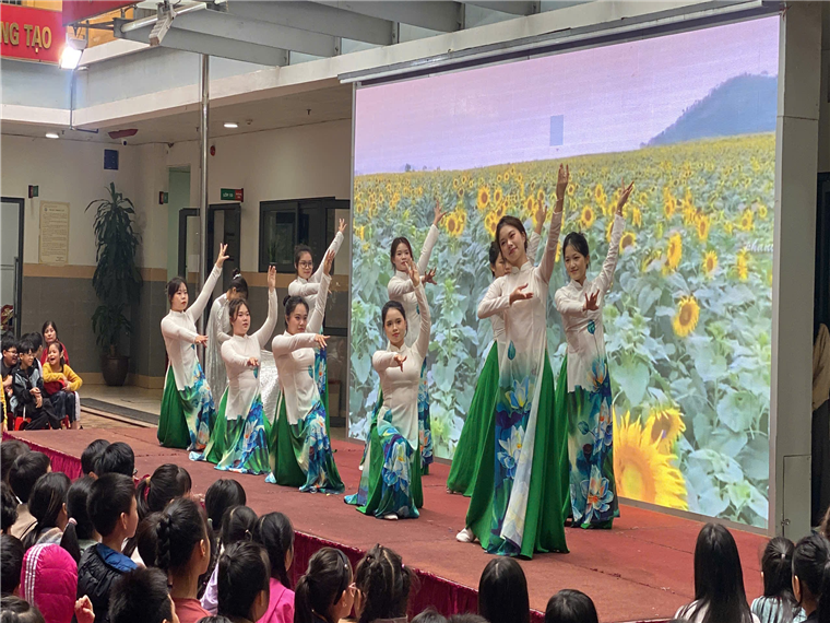 Không khí buổi lễ càng thêm náo nhiệt với phần múa hát “Điều em muốn” do tập thể lớp 3D trình bày, mang đến những giây phút vui tươi và đầy ý nghĩa.