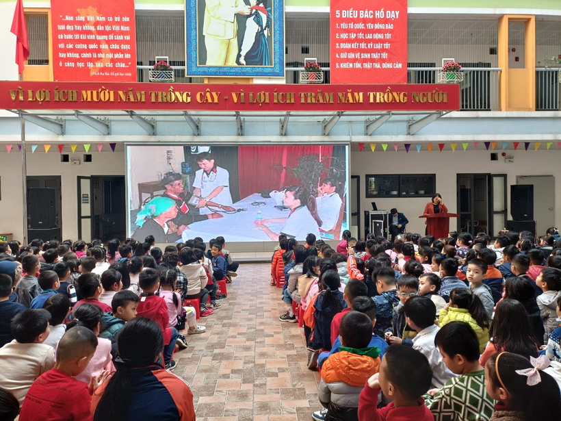 Sáng ngày 27/2 trong tiết sinh hoạt dưới cờ, liên đội trường Tiểu học Phan Chu Trinh đã giới thiệu cho học sinh toàn trường video tìm hiểu về lịch sử truyền thống, ý nghĩa của ngày Thầy thuốc Việt Nam, những tấm gương sáng của những y bác sĩ trong công cuộc bảo vệ và xây dựng đất nước.