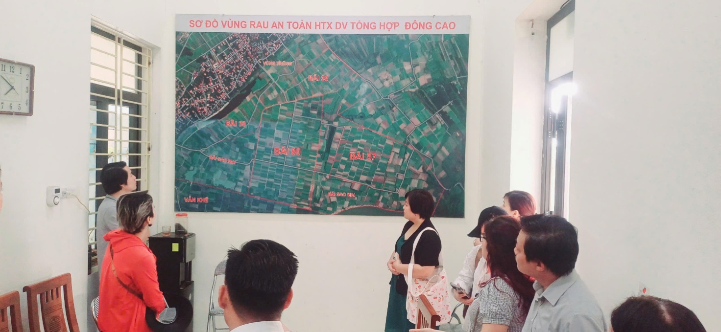 Sau khi làm việc tại trụ sở Hợp tác xã, đoàn đã tới thăm khu trồng rau, trực tiếp chứng kiến việc trồng rau cũng như lắng nghe chia sẻ của bà con nông dân - những người trực tiếp làm ra sản phẩm.