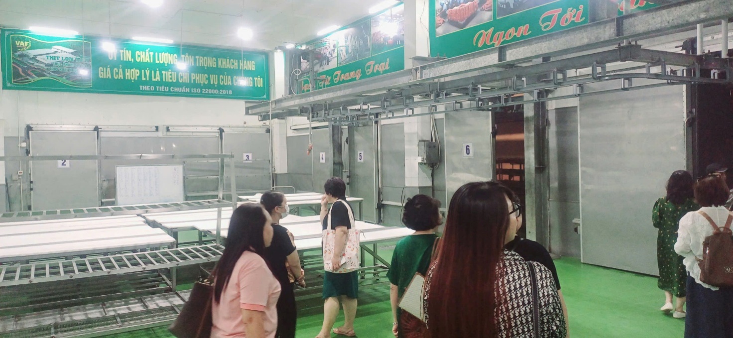 Rời nơi cung cấp rau xanh, đoàn đến địa điểm thứ hai, nơi cung cấp thịt tươi sống cho Công ty Hải Đăng. Nằm trên địa bàn Cụm công nghiệp Hà Bình Phương – Văn Bình – Thường Tín – Hà Nội, Công ty cổ phần Công nghệ thực phẩm Vinh Anh có quy mô lớn, khá hiện đại. Tại đây, đoàn gặp gỡ lãnh đạo của Công ty, xem video giới thiệu về hoạt động sản xuất, trao đổi kĩ về quy trình hoạt động, việc đảm bảo vệ sinh, an toàn thực phẩm, truy xuất nguồn cung.
