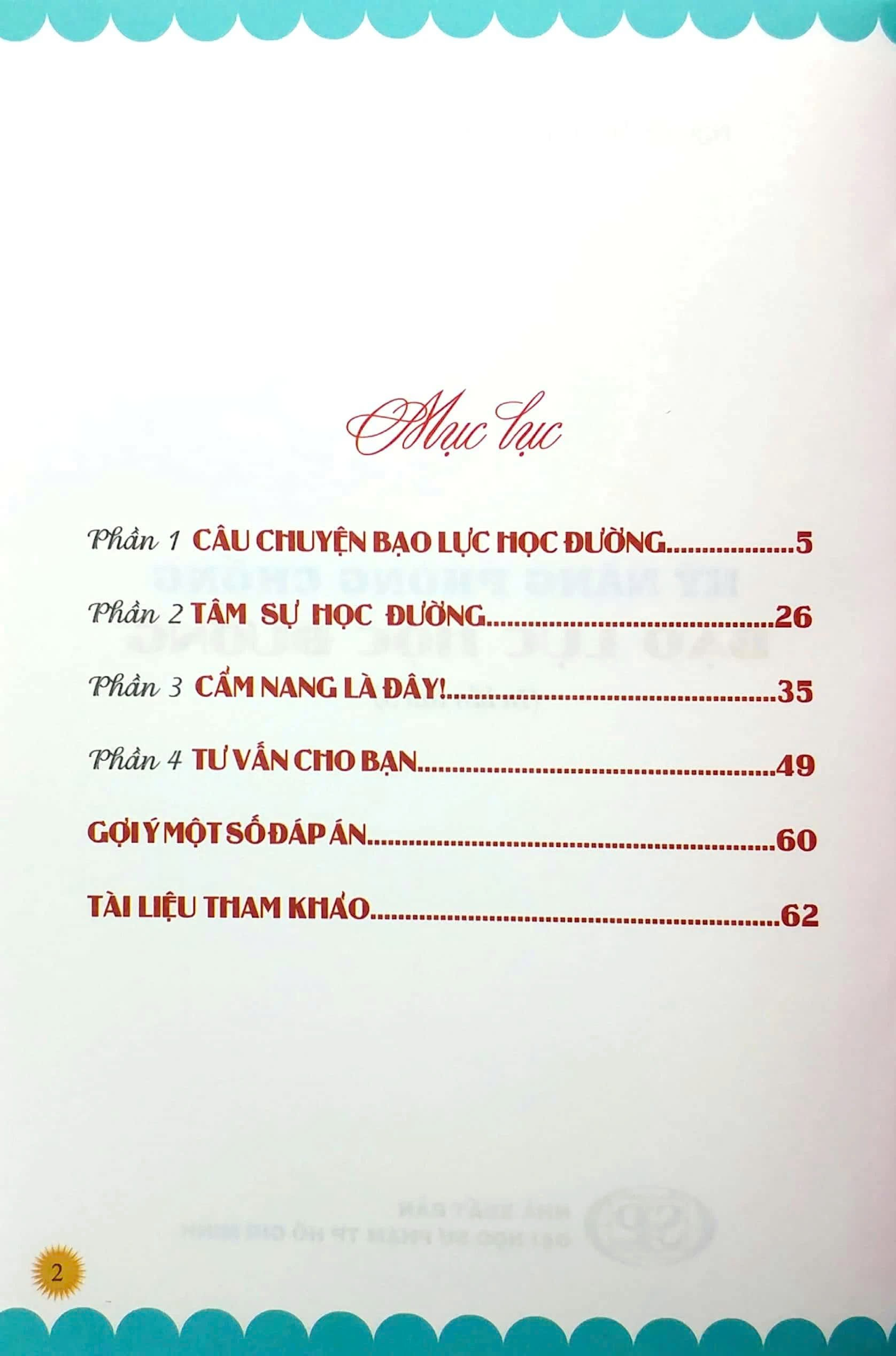 Cuốn sách “Kỹ năng phòng chống bạo lực học đường” gồm 4 phần, tập hợp những câu chuyện, tình huống gần gũi được trình bày dưới dạng trực quan, sinh động và hấp dẫn. Quyển sách cung cấp những thông tin bổ ích về bạo lực học đường, giúp nhận diện những hành vi bạo lực trong môi trường học đường, hiểu được nguyên nhân và cách phòng tránh bạo lực không chỉ trong trường học mà ngoài cuộc sống. Sách được viết bằng chính những trải nghiệm khi quan sát hoạt động của các em trong môi trường học đường và những kinh nghiệm tham vấn trực tiếp về các tình huống học đường của chính các em trong nghề tham vấn tâm lý.