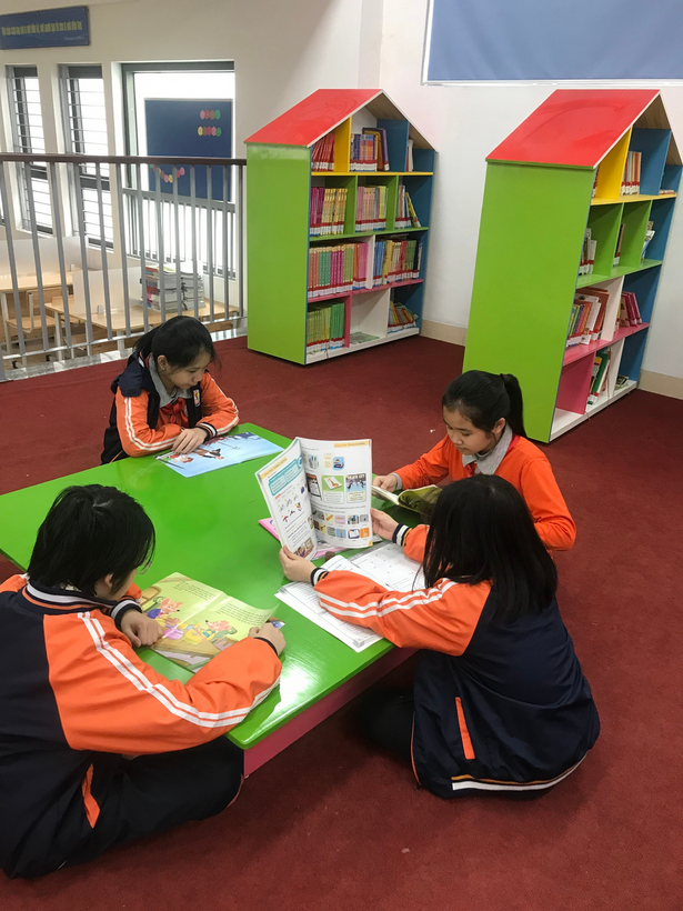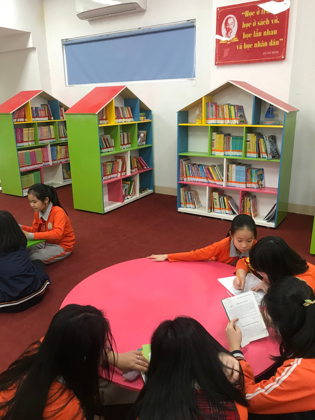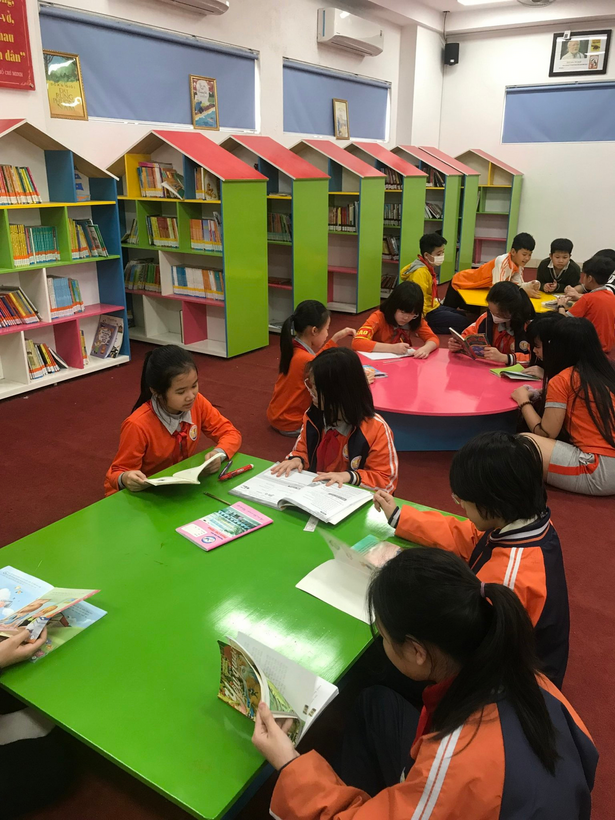 Để triển khai tiết học thư viện hiệu quả, phòng đọc được bố trí có góc tra cứu, góc trò chơi, góc viết vẽ; có đủ không gian để học sinh tham gia các hoạt động: cá nhân, cặp đôi, nhóm; có đủ không gian phục vụ việc mượn, trả sách. Sự thân thiện, thoải mái về không gian của thư viện cũng làm cho các em hào hứng với việc đọc sách; tạo cho các em thói quen đọc sách, qua đó học được nhiều điều bổ ích từ sách.