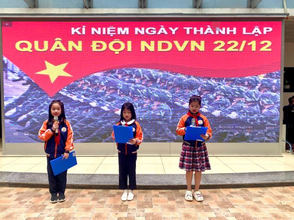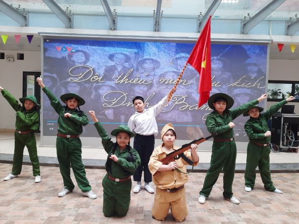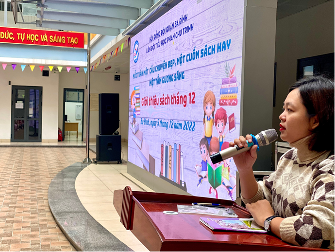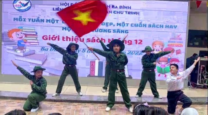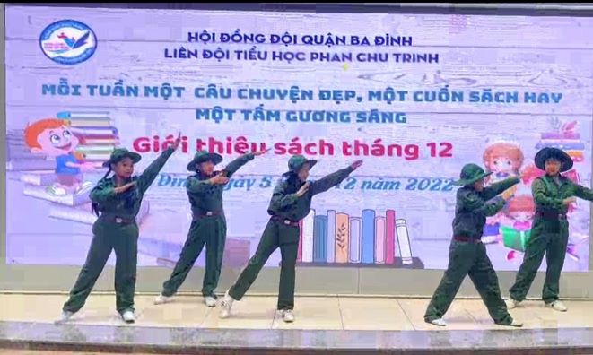 Chào mừng 50 năm ngày Chiến thắng Hà Nội- Điện Biên Phủ trên không và 78 năm ngày Thành Lập Quân đội nhân dân Việt Nam, sáng ngày 5/12/2022, trong tiết Sinh hoạt dưới cờ, Liên đội trường Tiểu học Phan Chu Trinh tổ chức Chuyên đề “Mỗi tuần một câu chuyện đẹp, một cuốn sách hay, một tấm gương sáng” và phối hợp với Thư viện trường giới thiệu Sách Tháng 12 “ Đội thiếu niên du kích Đình Bảng”