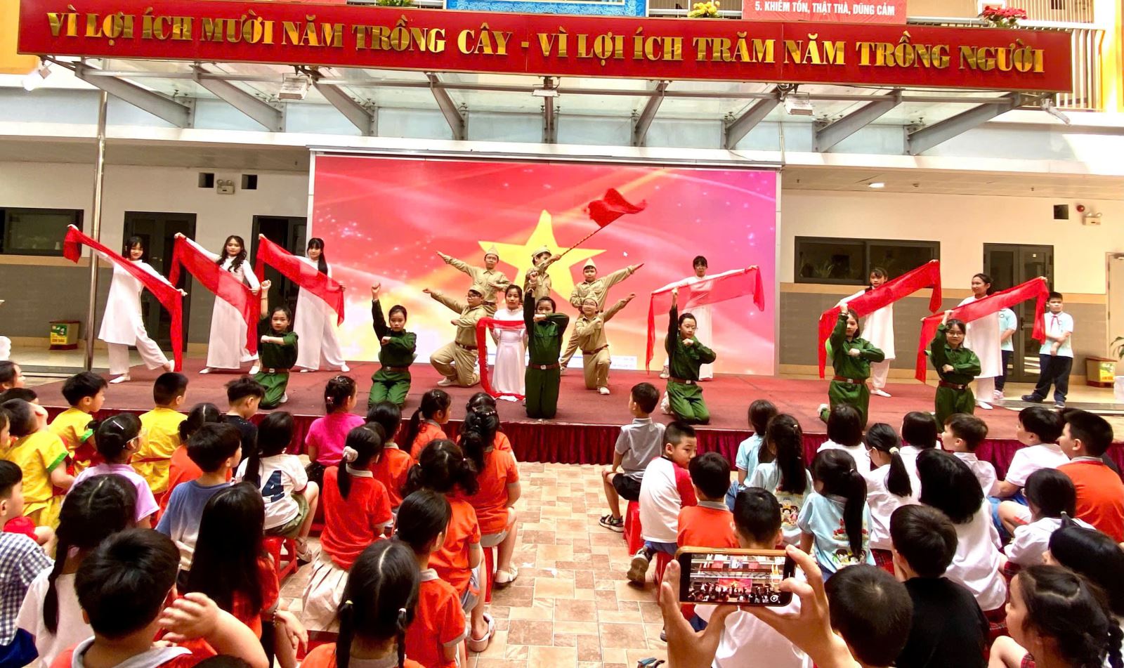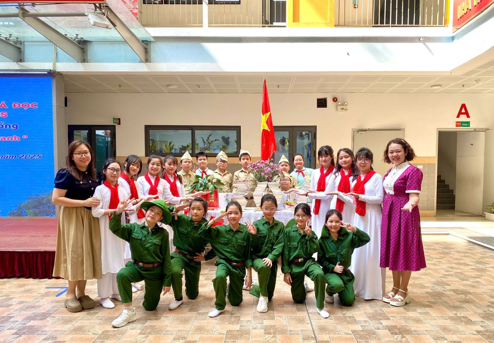 Một trong những điểm nhấn xúc động nhất của Ngày hội là phần giới thiệu sách do đội tuyên truyền măng non lớp 5B thực hiện. Giọng đọc mạch lạc, đầy cảm xúc đã dẫn dắt người nghe lần lượt bước qua những trang sử hào hùng của cuốn sách "Theo bước cha anh". Bên trong những câu chuyện là niềm tự hào, sự biết ơn và tình yêu nước được nhen nhúm lên trong lòng các bạn nhỏ.