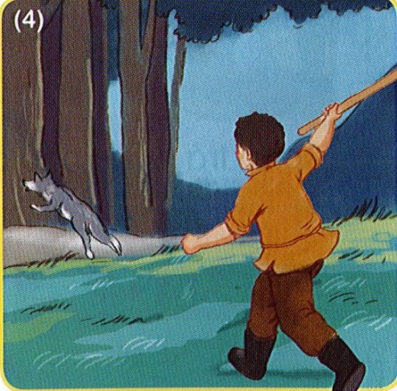 Vừa lúc đó, Bác chăn cừu nghe được, lập tức vác gậy chạy đến, nện cho Sói ta một trận nên thân.