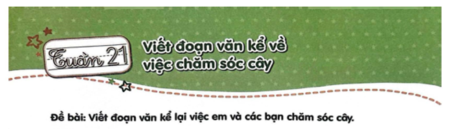 Thời điểm này chúng ta bắt đầu sang tuần 21 và là thời điểm chúng ta khám phá cách viết đoạn văn về hoạt động chăm sóc cây cối giúp cho cảnh quan nơi ta sống cũng như môi trường ta học tập luôn xanh, sạch, đẹp.