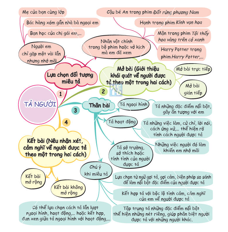 Mỗi người xung quanh chúng ta đều có những nét riêng biệt khiến họ trở nên đặc biệt và đáng nhớ. Có người hiền lành, nhân hậu; có người vui vẻ, hài hước; cũng có người chăm chỉ, nghị lực. Chắc hẳn ai trong chúng ta cũng từng có lúc ngắm nhìn thật kĩ một người và tự hỏi: Điều gì khiến họ trở nên đặc biệt? Là ánh mắt hiền từ, nụ cười ấm áp, đôi bàn tay chăm chỉ hay tấm lòng bao dung? Viết một bài văn tả người không chỉ giúp chúng ta rèn luyện khả năng quan sát mà còn là cách để thể hiện tình cảm, sự trân trọng với người đó. Văn miêu tả chính là cách giúp chúng ta khắc họa những hình ảnh ấy bằng lời văn, làm cho những con chữ trở nên sống động và giàu cảm xúc. Tuy nhiên, làm sao để miêu tả một cách sinh động, tự nhiên mà không rập khuôn, khô khan? Đó là lí do chúng ta cần đến sơ đồ tư duy – một công cụ hữu ích giúp bài viết của chúng ta trở nên mạch lạc và hấp dẫn hơn. Hãy cùng tìm hiểu và bắt đầu sáng tạo những bài văn đầy cảm xúc nhé!