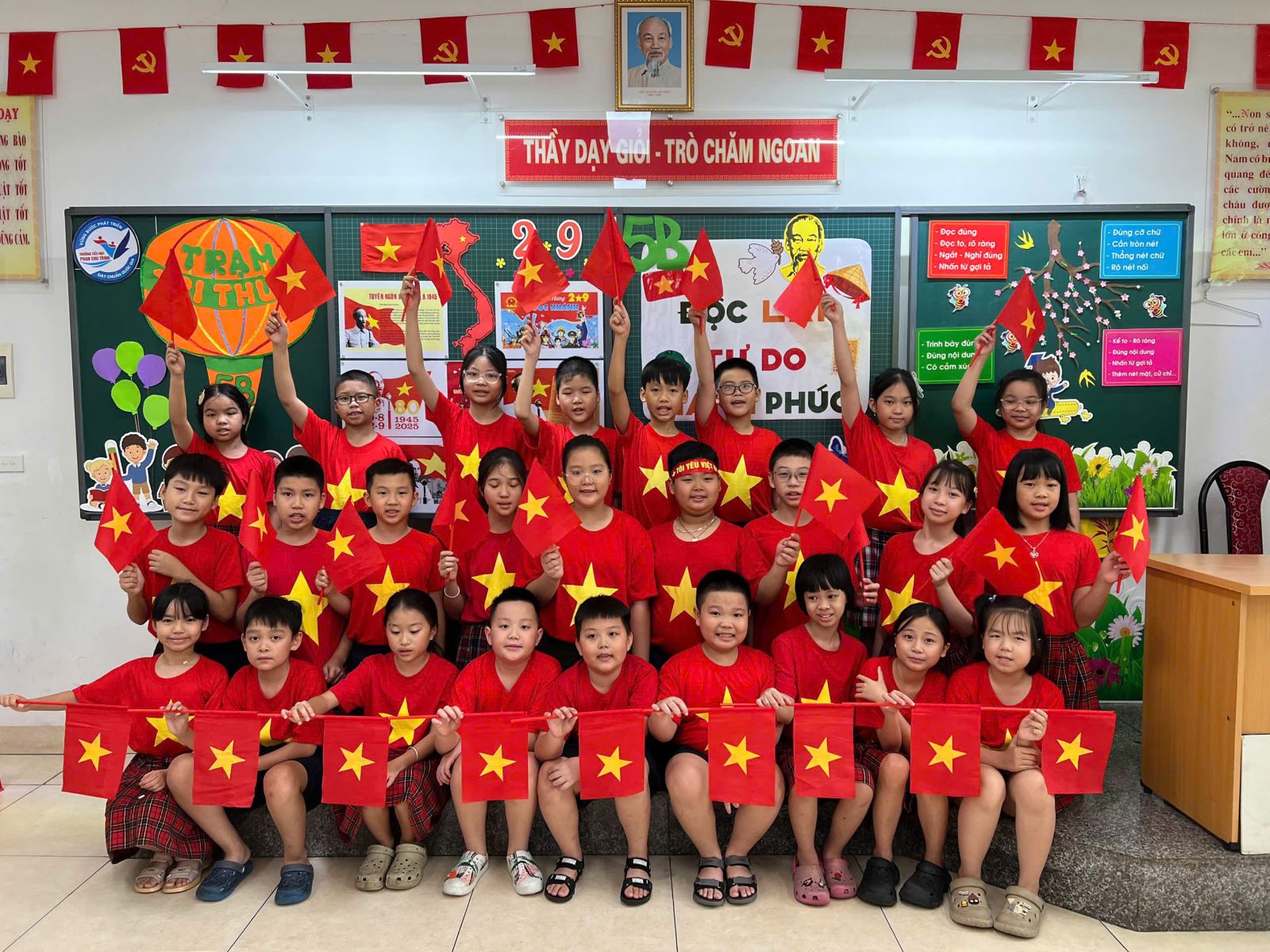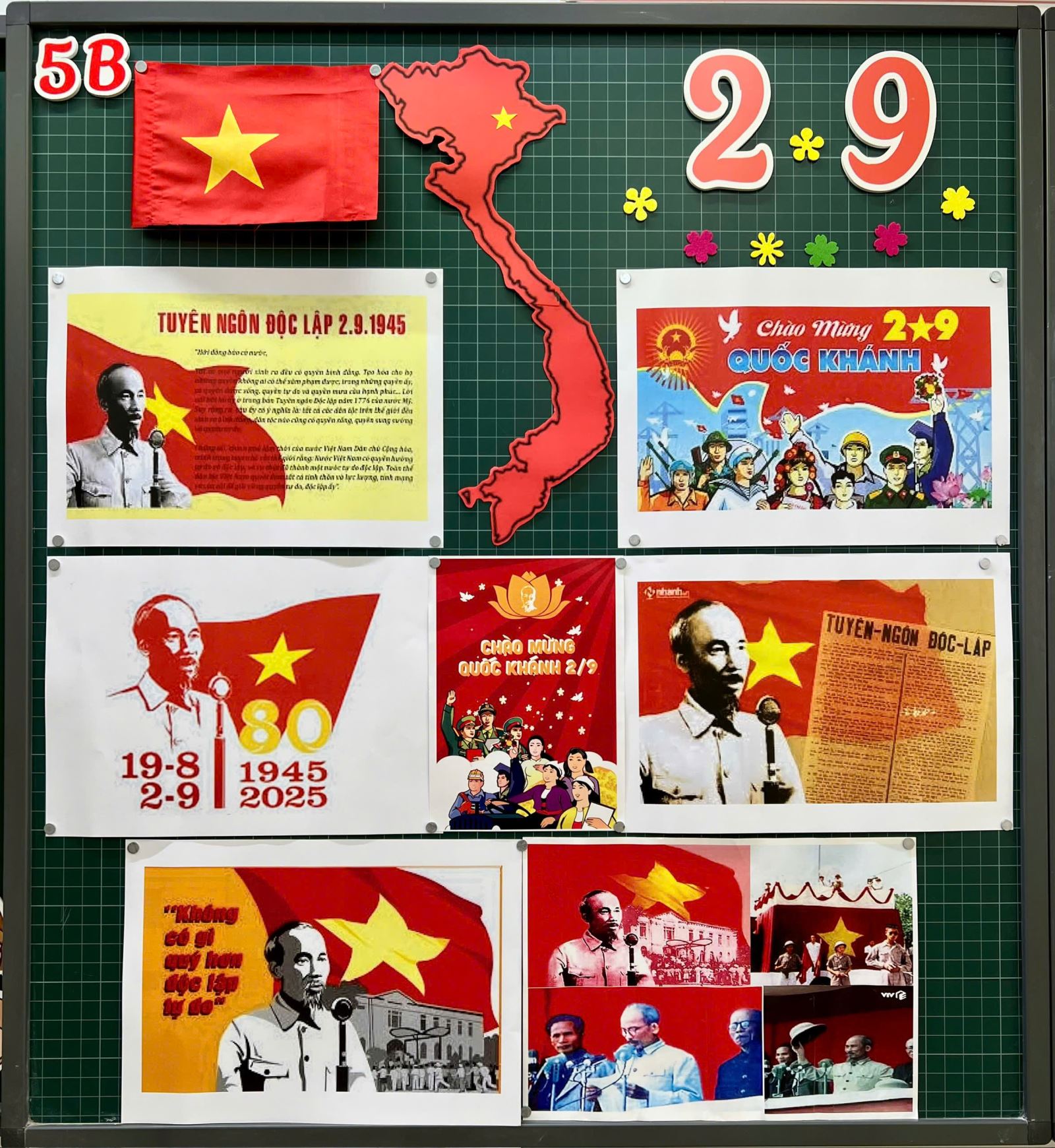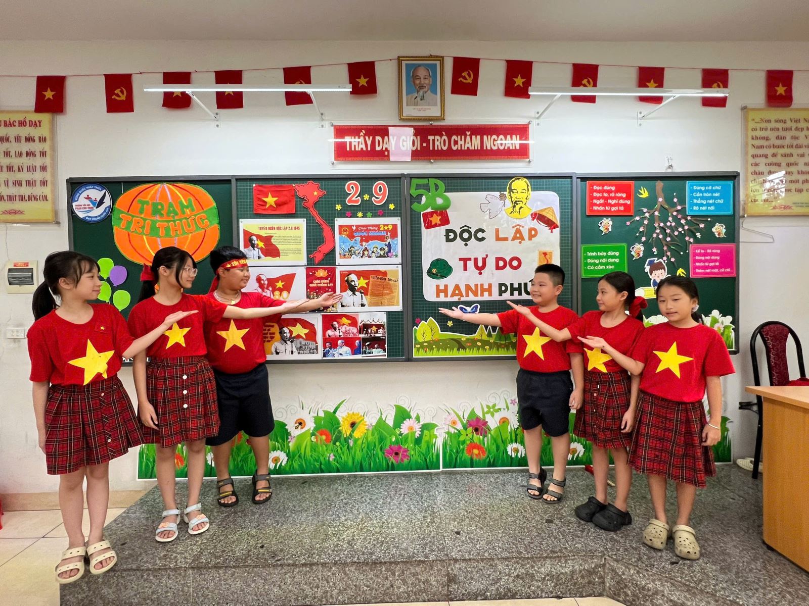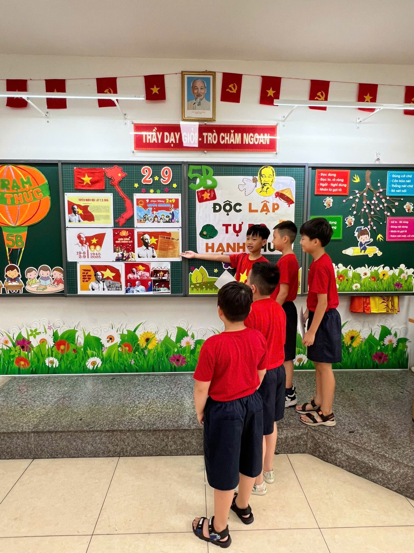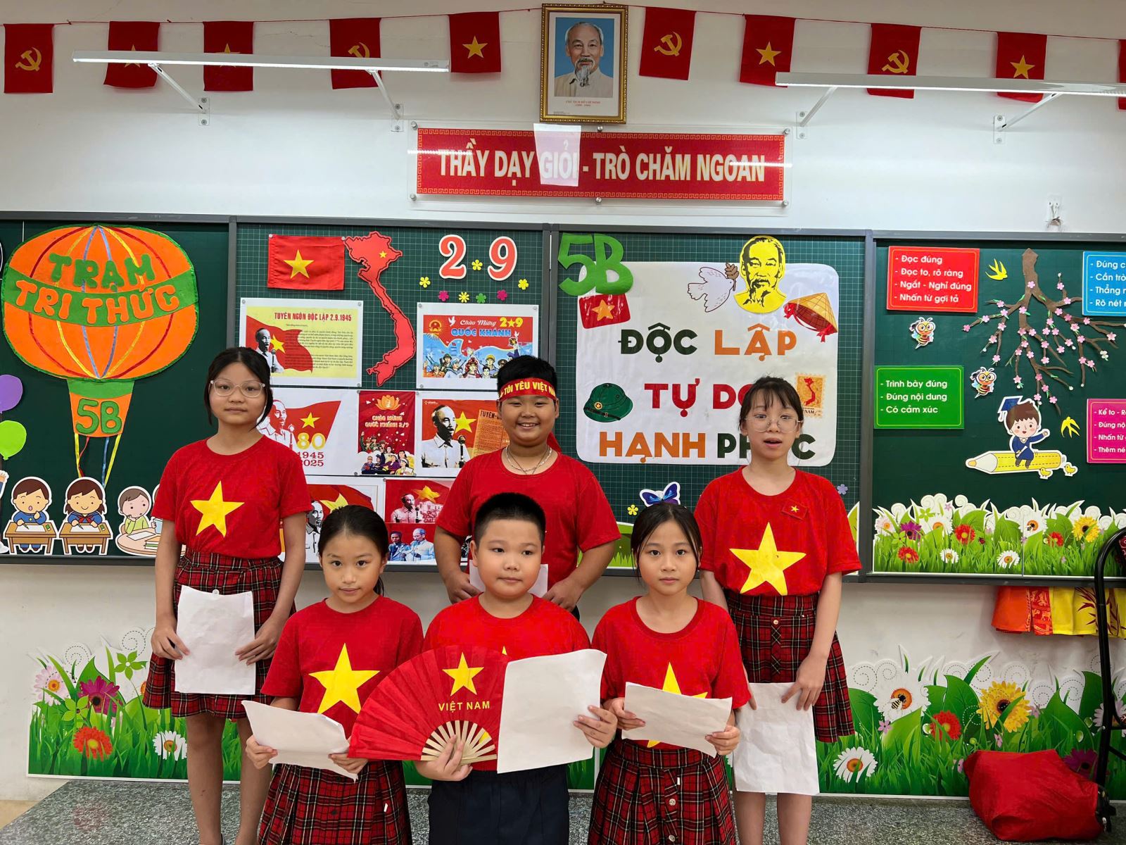 Với sự phối hợp chặt chẽ của Hội Cha mẹ học sinh, cô và trò lớp 5B đã tích cực tìm hiểu, sưu tầm tư liệu và tổ chức lễ kỉ niệm Tết Độc lập một cách trang trọng, ấm áp và giàu ý nghĩa.