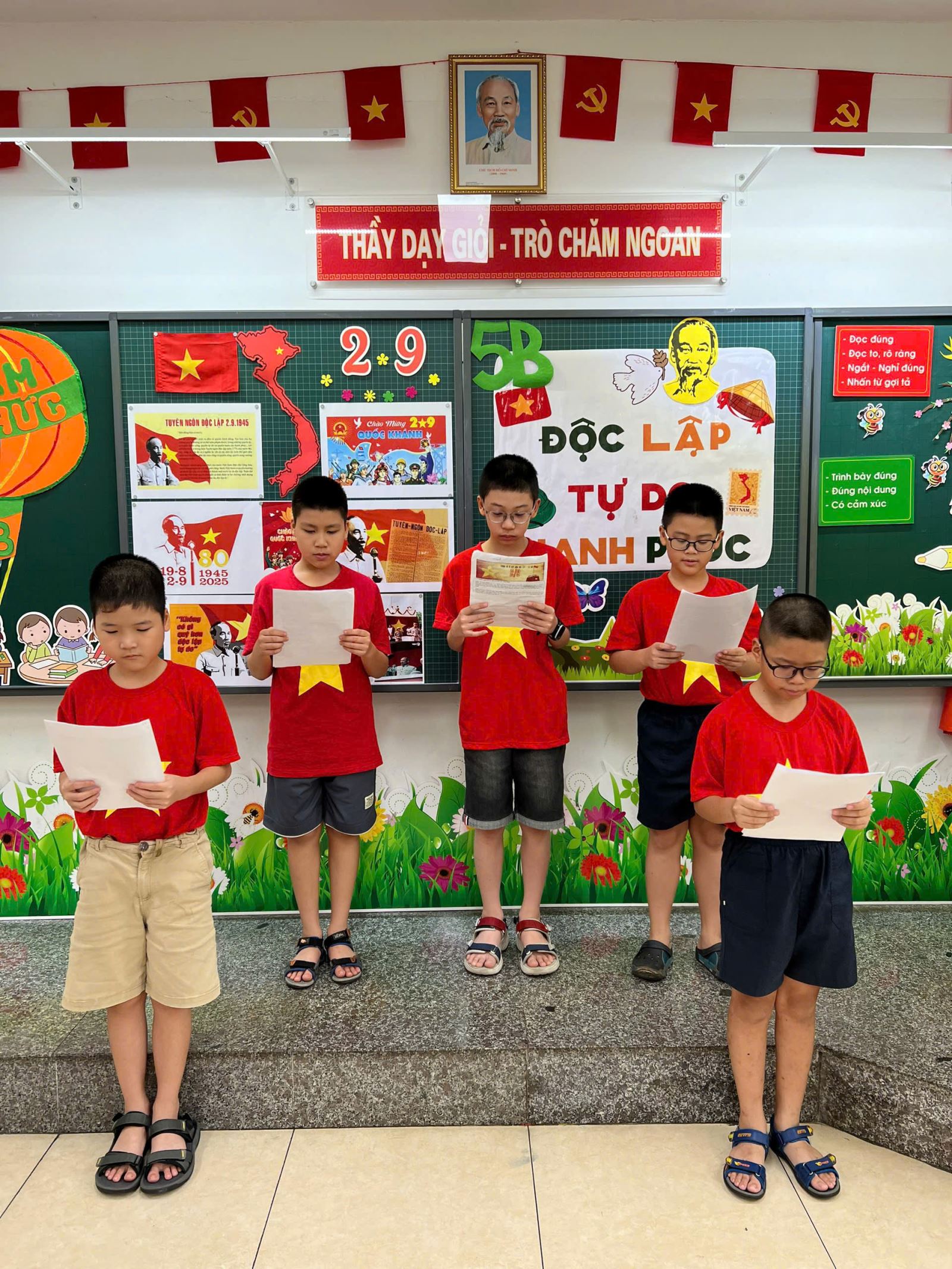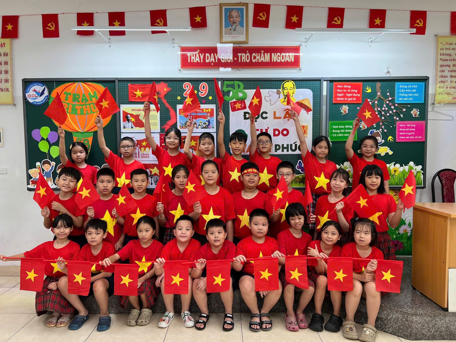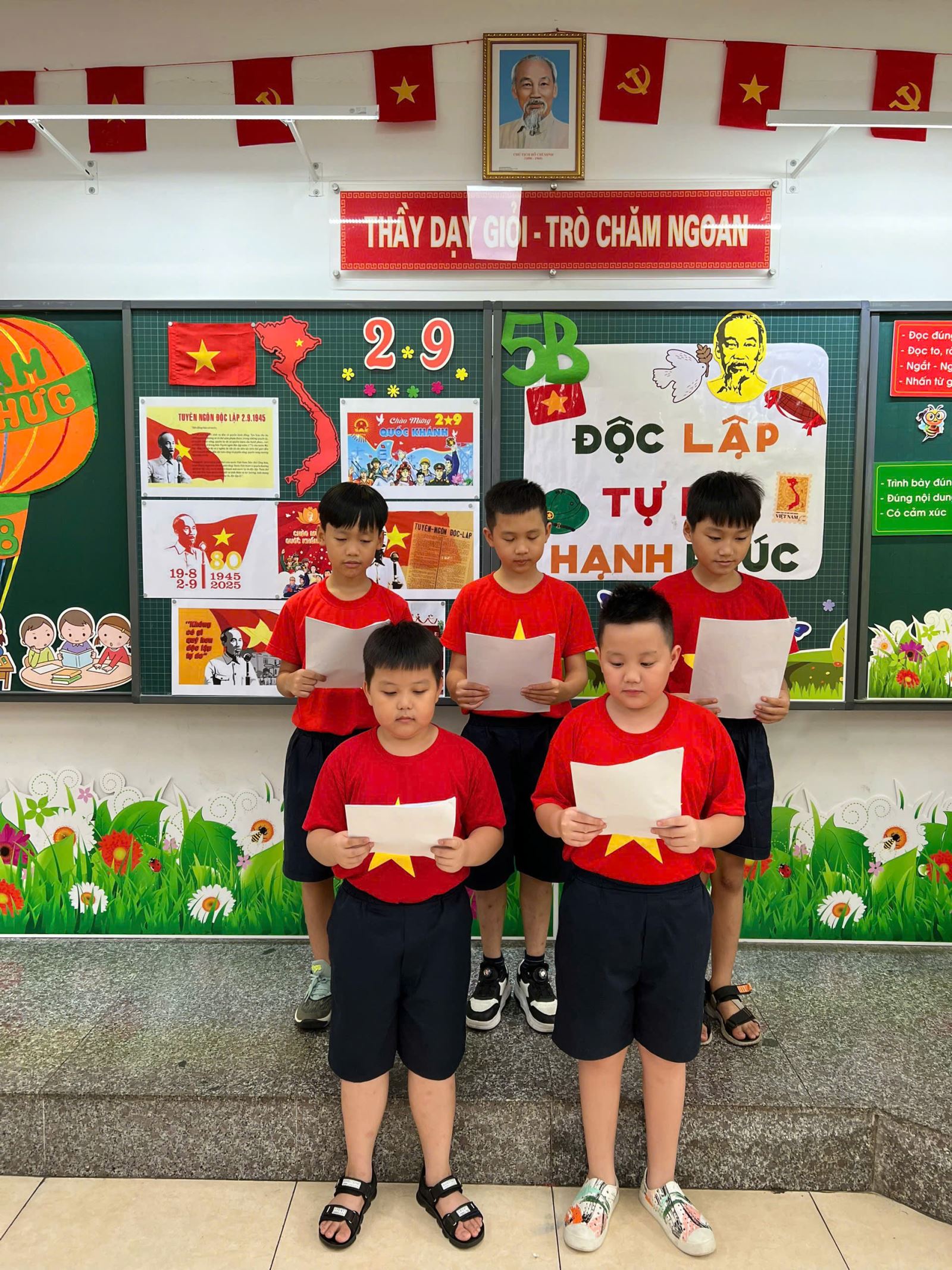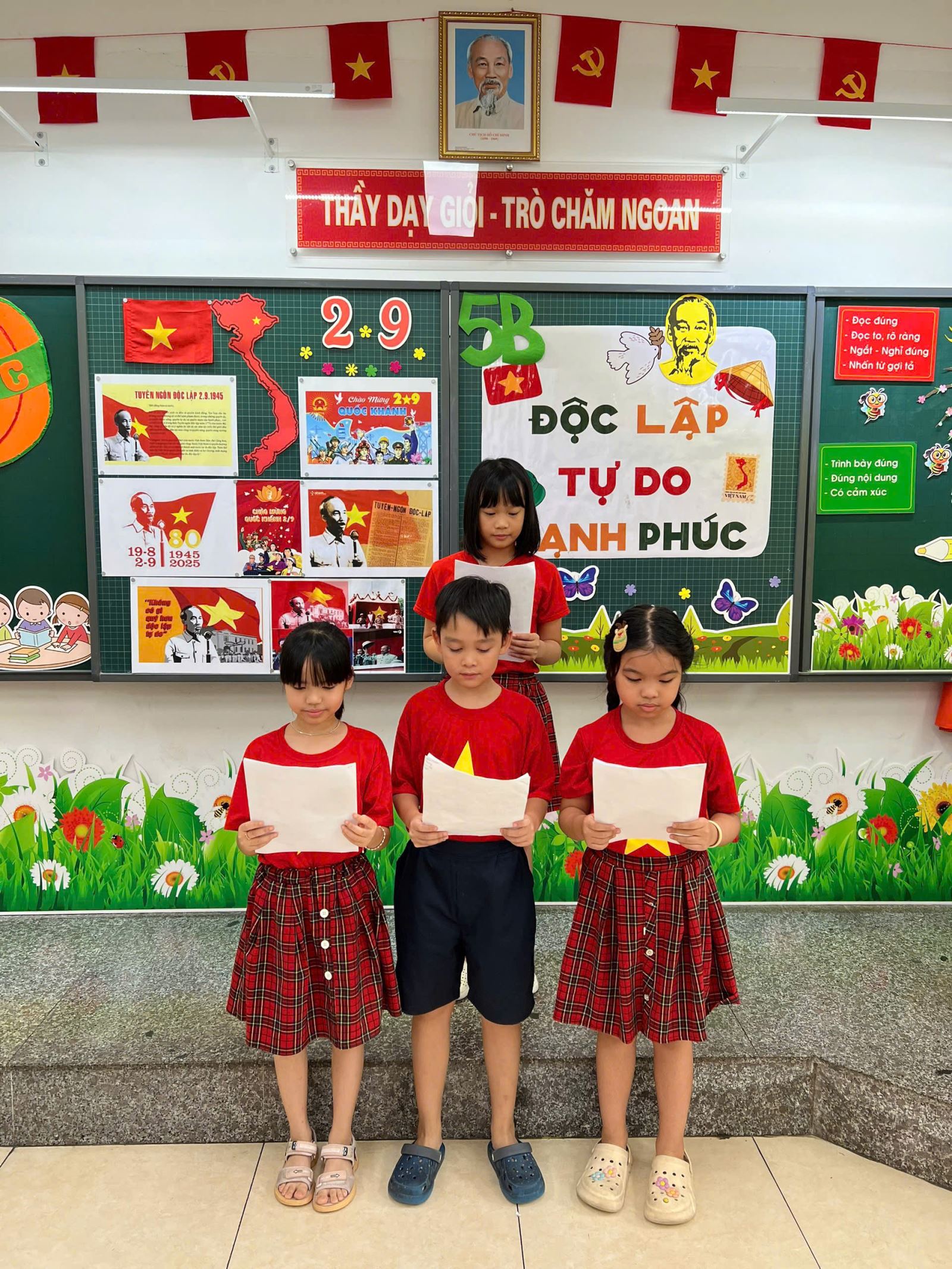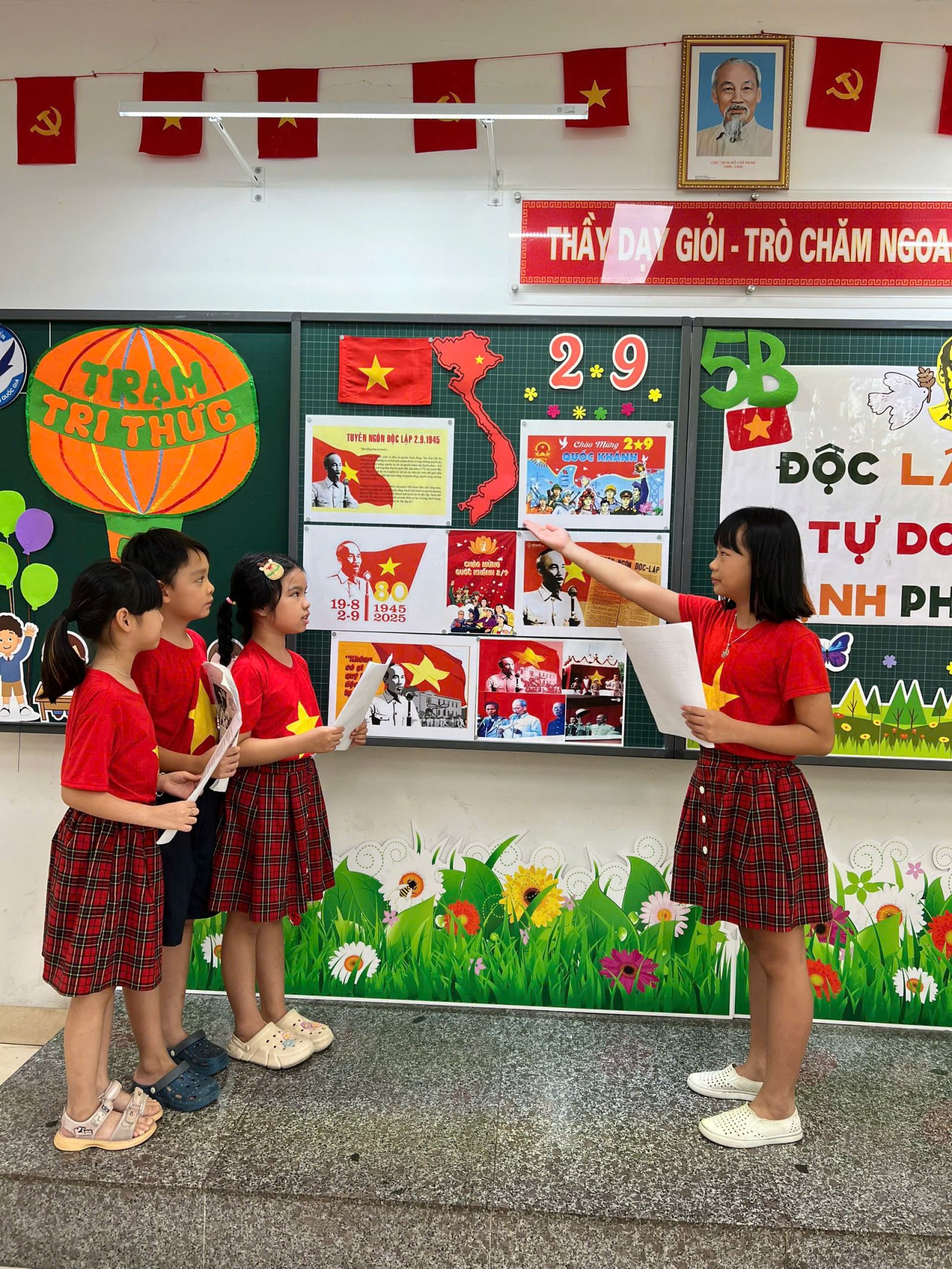 Với sự phối hợp chặt chẽ của Hội Cha mẹ học sinh, cô và trò lớp 5B đã tích cực tìm hiểu, sưu tầm tư liệu và tổ chức lễ kỉ niệm Tết Độc lập một cách trang trọng, ấm áp và giàu ý nghĩa.