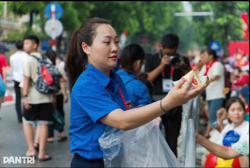 Về phía ban tổ chức, công tác hỗ trợ bà con đã được triển khai từ nhiều ngày trước. Thanh niên tình nguyện trên địa bàn phường Ba Đình liên tục phát nước, sữa, quạt… miễn phí cho người dân.