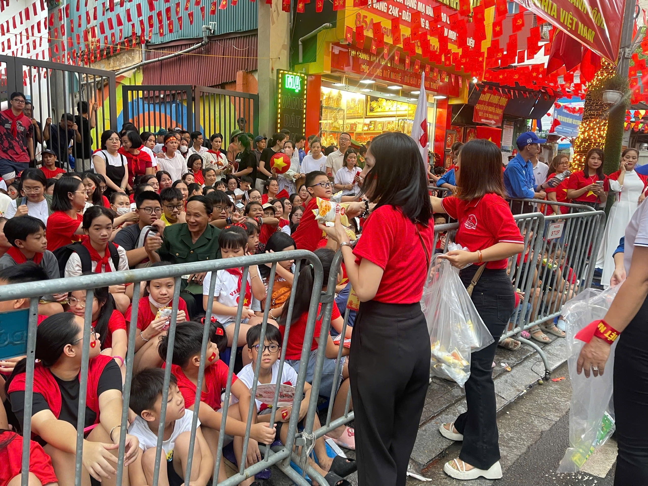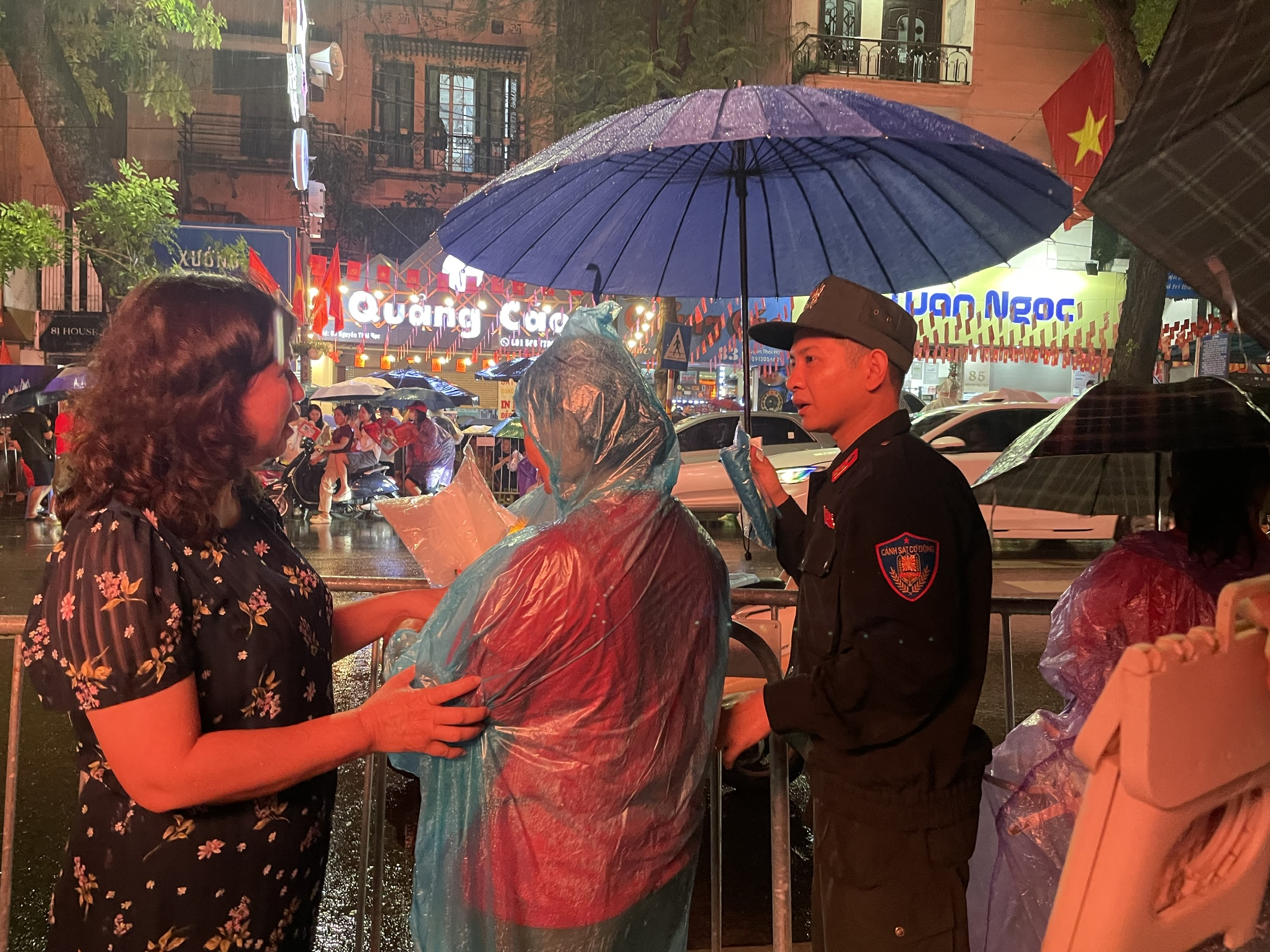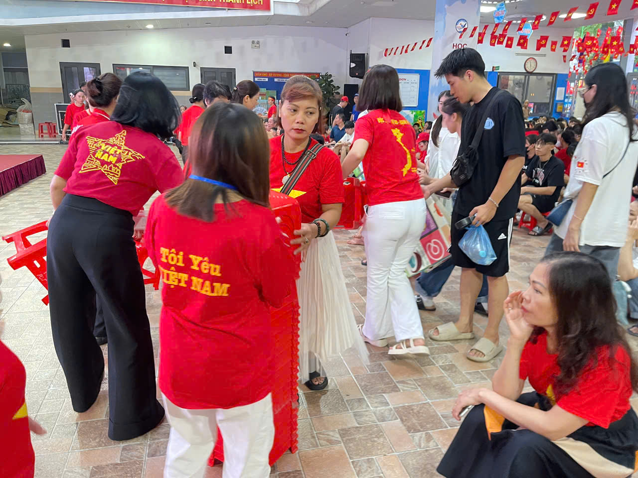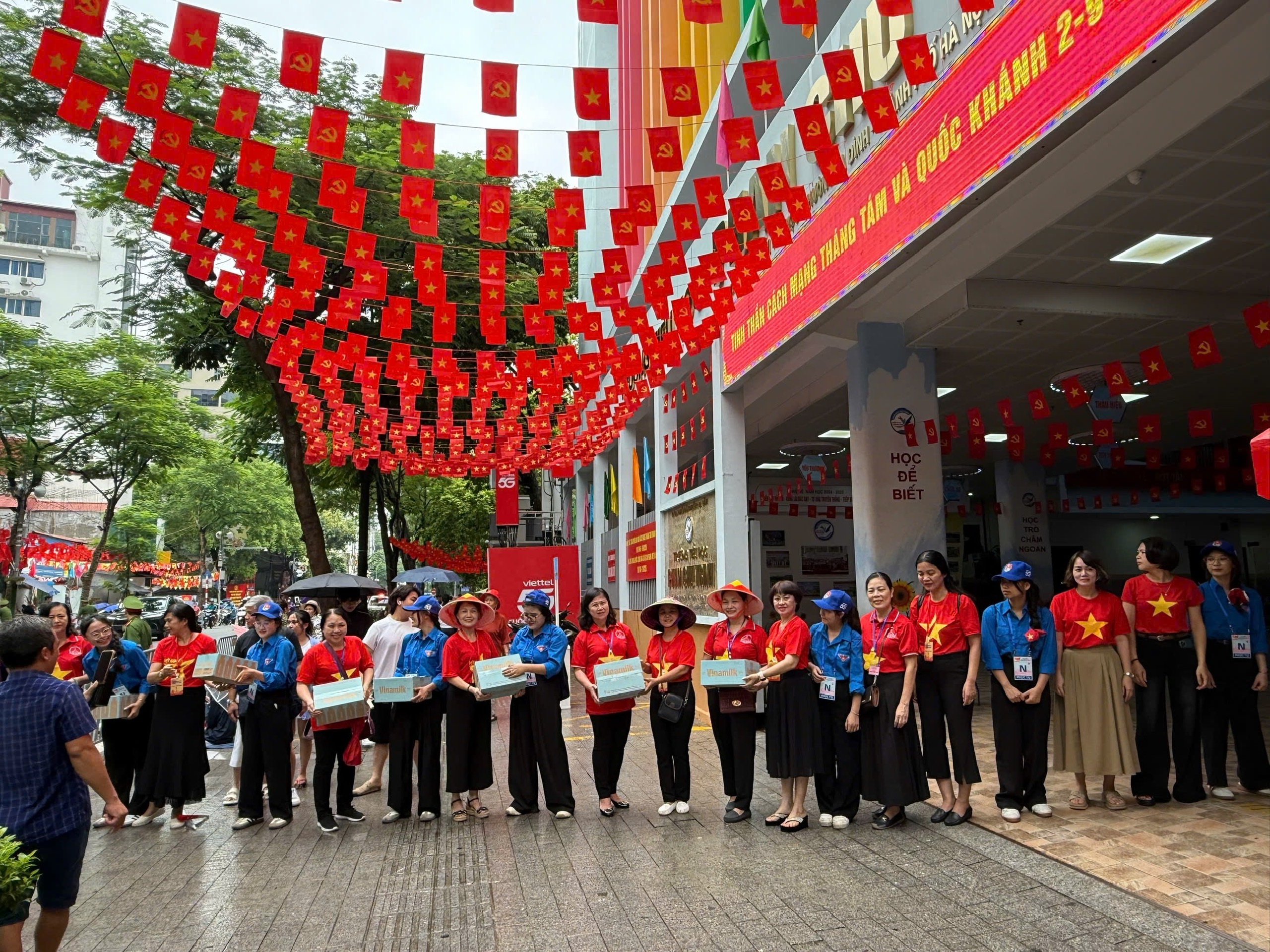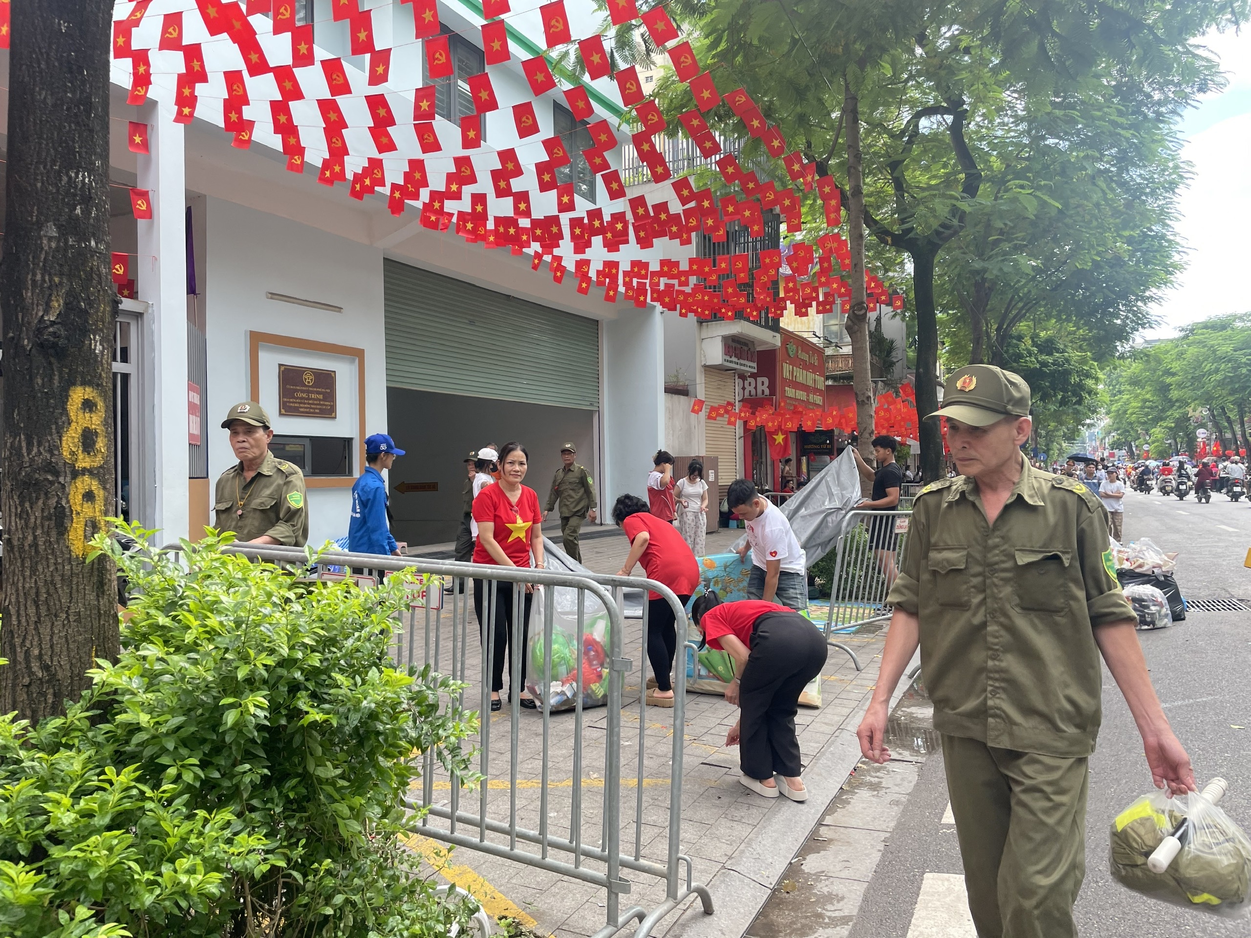 Trong suốt những ngày hợp luyện, tổng duyệt ( 21/8, 25/8, 27/8, 30/8 ) cùng ngày chính thức diễn ra lễ diễu binh, diễu hành, hàng vạn người dân từ khắp nơi đã hội tụ về Quảng trường Ba Đình lịch sử để được tận mắt chứng kiến những khoảnh khắc hào hùng của dân tộc. Giữa dòng người đông đúc, nhà trường đã mở rộng cánh cửa, trở thành một điểm nghỉ ngơi miễn phí, nơi bà con có thể dừng chân uống nước, sử dụng nhà vệ sinh, lấy lại sức lực để tiếp tục hòa mình vào không khí trọng đại. Những cốc nước mát lành, những không gian sạch sẽ, an toàn, đã góp phần làm dịu đi cái nắng oi nồng của những ngày tháng Tám, đem đến sự an yên, thoải mái cho hàng ngàn lượt người dân dưới những cơn mưa xối xả. Ngoài việc chuẩn bị cơ sở vật chất, cán bộ, giáo viên, nhân viên nhà trường còn trực tiếp tham gia phục vụ nhân dân tại hai điểm trọng yếu. Dù công việc bận rộn, nhưng mỗi cán bộ, giáo viên, nhân viên đều thấy vinh dự, tự hào, sẵn sàng dành trọn thời gian, công sức để hỗ trợ bà con. Hình ảnh cán bộ, giáo viên, nhân viên nhà trường với nụ cười tươi, ân cần hướng dẫn, phục vụ tận tình đã để lại dấu ấn đẹp trong lòng mỗi người dân khi đến với nhà trường.