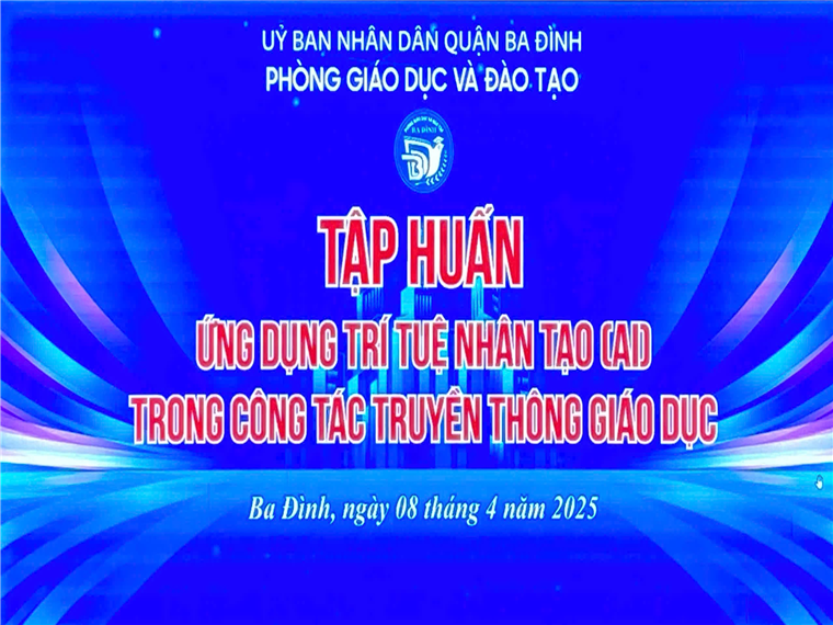 Nhằm nâng cao năng lực ứng dụng công nghệ trong hoạt động Truyền thông Giáo dục, ngày 08/4/2025, Phòng GD&ĐT quận Ba Đình đã phối hợp với Công ty Cổ phần Tomotech tổ chức buổi Tập huấn với chủ đề “Ứng dụng Trí tuệ nhân tạo trong công tác Truyền thông Giáo dục” dành cho đội ngũ cán bộ, giáo viên phụ trách công tác Truyền thông tại các trường Mầm non, Tiểu học và THCS trên địa bàn quận.